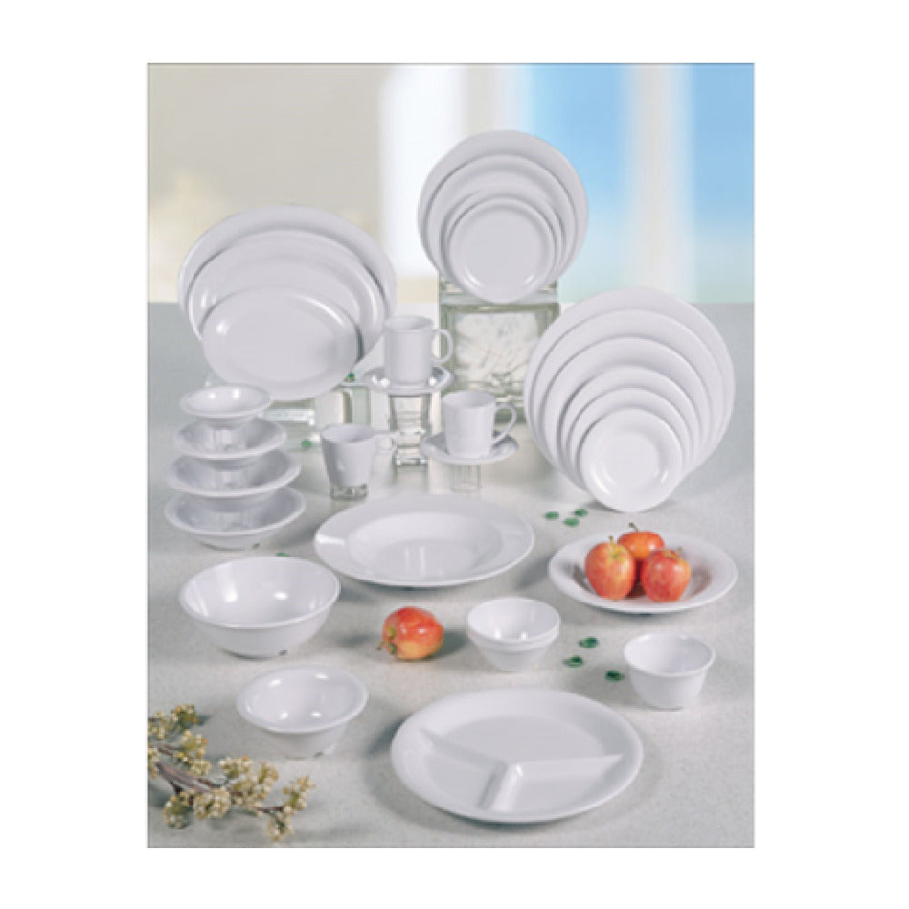 The Thunder Group CR9108W Saucer 5-1/2" Dia. Break-resistant is an expertly crafted dish designed to meet the rigorous demands of the food service industry. With a diameter of 5-1/2 inches, it provides an ideal size for accommodating various types of servings. This saucer is constructed from melamine, a material renowned for its durability and resistance to breakage, making it a reliable choice for busy environments. Its white finish offers a clean, classic aesthetic that complements any table setting, while its break-resistant feature ensures longevity in high-traffic areas. The saucer is dishwasher safe, allowing for easy and efficient cleaning, and it is BPA free, ensuring safety for consumers. Certified by NSF, it meets strict standards for public health protection. Specifically designed to accompany the CR313, CR5044, ML901, and ML9011 models, it seamlessly integrates into existing configurations to enhance service capabilities. This saucer is an essential component for restaurants, catering services, and other food service operations seeking a durable, stylish, and safe solution for their dishware needs. Its combination of practical features and compliance with safety standards makes it a valuable asset for any establishment prioritizing quality and reliability in their dining experience.