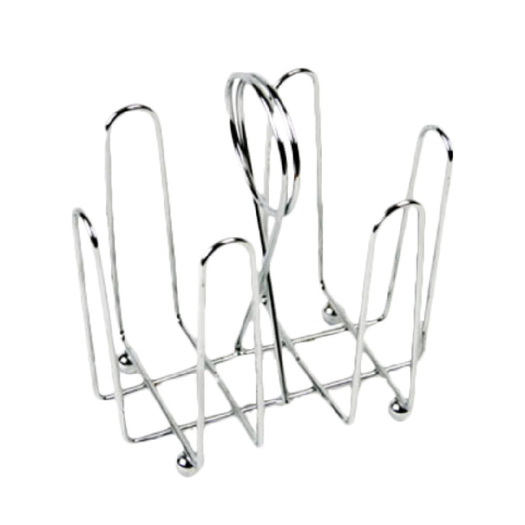 The Thunder Group CRSP435 Sugar Packet Holder is a meticulously designed wire holder measuring 4-1/2 inches by 3-1/2 inches by 5-1/2 inches in height, making it a practical and stylish solution for organizing sugar packets in various settings. Its chrome-plated finish enhances both durability and visual appeal, ensuring it complements a wide range of interior decor styles. This holder is particularly useful for restaurants, cafes, and catering services, where maintaining an organized and clean tabletop is crucial. The wire construction provides a lightweight yet sturdy design, making it easy to move and refill as needed. With a minimum order quantity of 12, this holder is ideal for businesses looking to maintain consistency across multiple tables or locations. The Thunder Group CRSP435 Sugar Packet Holder stands out for its blend of aesthetics and functionality, catering to the needs of food service establishments that prioritize both form and function. Its dimensions are specifically designed to hold a generous number of sugar packets, ensuring customer satisfaction without frequent refills. This product is a testament to thoughtful design, offering an efficient solution for sugar packet storage while seamlessly integrating into the service environment.