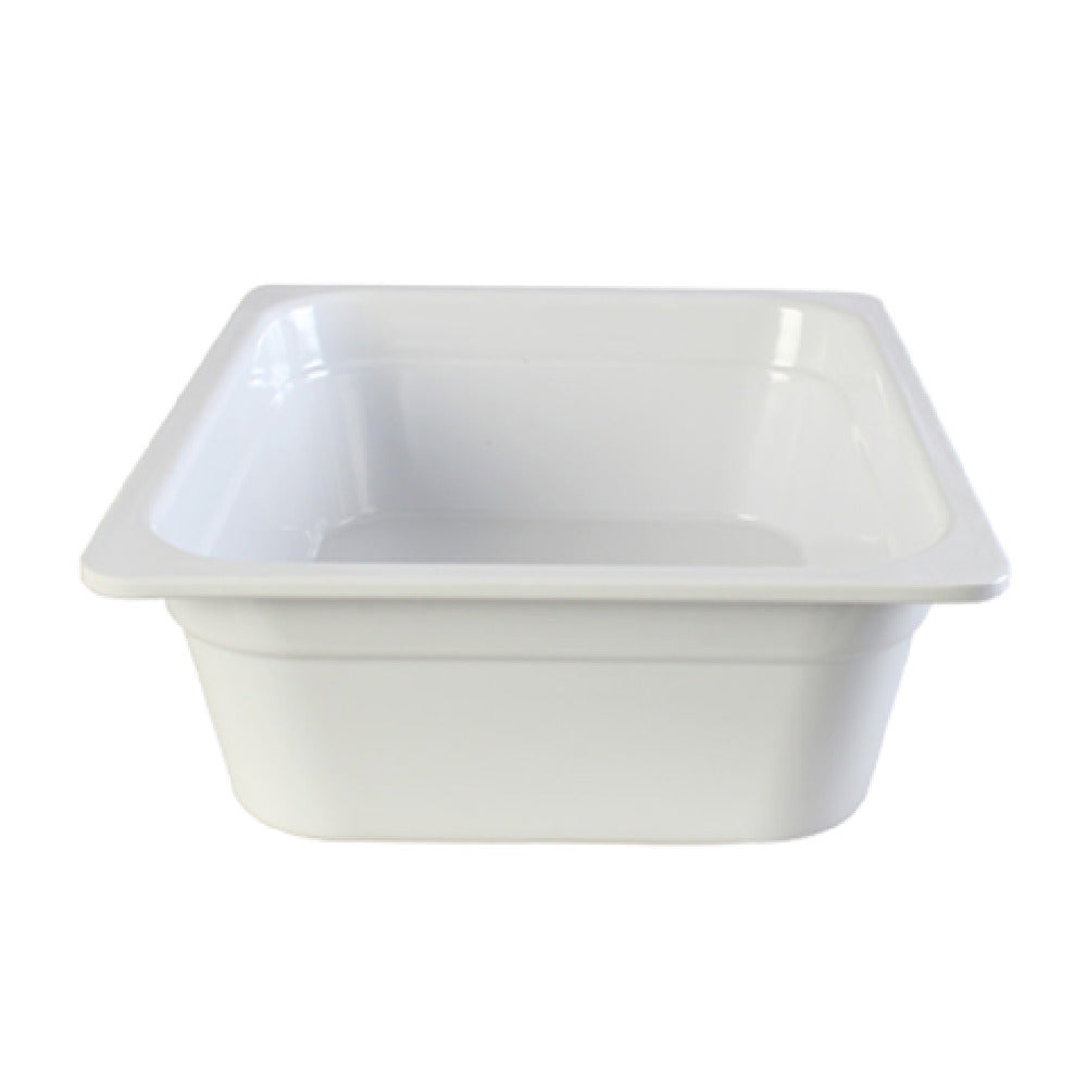 The Thunder Group GN1124W Food Pan 1/2 GN 4" Deep is a versatile and essential component for both commercial kitchens and catering operations, designed to accommodate a variety of culinary applications. Crafted from durable melamine, this food pan provides a resilient option for storing both cold and hot foods, ensuring longevity and reliability under diverse temperature conditions. The pan's 4-inch depth offers ample space for food storage, making it suitable for a range of food service needs. Its stackable design optimizes storage efficiency, allowing for convenient organization in busy kitchen environments. Additionally, the anti-jamming feature ensures that pans can be easily separated, minimizing the risk of damage and ensuring smooth operations in high-paced settings. The pristine white finish complements any kitchen aesthetic while being BPA-free, addressing health safety concerns. The product's NSF certification underscores its adherence to public health and safety standards, providing peace of mind for users in the food industry. With a minimum order of four units, this food pan is ideal for businesses seeking reliable and safe food storage solutions. Its robust design and practical features make the Thunder Group GN1124W Food Pan a valuable asset for restaurants, caterers, and other food service professionals.