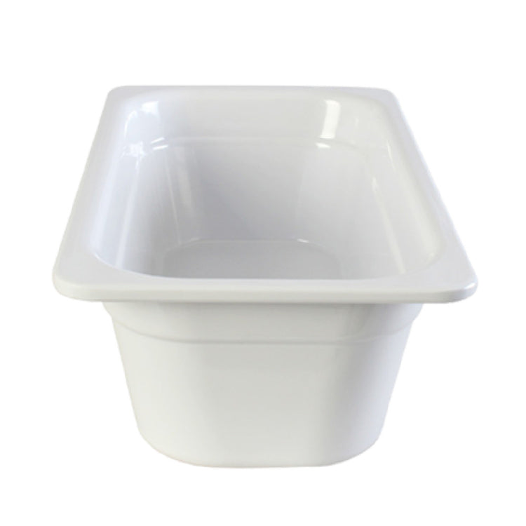The Thunder Group GN1134W Food Pan 1/3 GN 4" Deep is a versatile and functional addition to any food service operation, adeptly catering to the diverse needs of the industry. Constructed from durable melamine, this food pan is both BPA-free and NSF certified, ensuring safety and compliance with health standards. Designed to accommodate both cold and hot foods, it provides flexibility in food preparation and presentation. Its 1/3 GN sizing and 4-inch depth deliver ample space for various food items while optimizing storage efficiency. Notably stackable, the GN1134W Food Pan is engineered to be anti-jamming, promoting seamless stacking and retrieval during busy service periods. This feature minimizes the risk of damage and ensures longevity, making it a reliable choice for high-volume kitchens. Available in an elegant white color, this food pan seamlessly integrates into any kitchen or buffet setting, enhancing the visual appeal of food displays. It's important to note that a minimum order of six units is required, ensuring ample supply for consistent kitchen operations. The Thunder Group GN1134W Food Pan is an ideal solution for professional chefs and caterers seeking a practical and dependable food storage and service option.