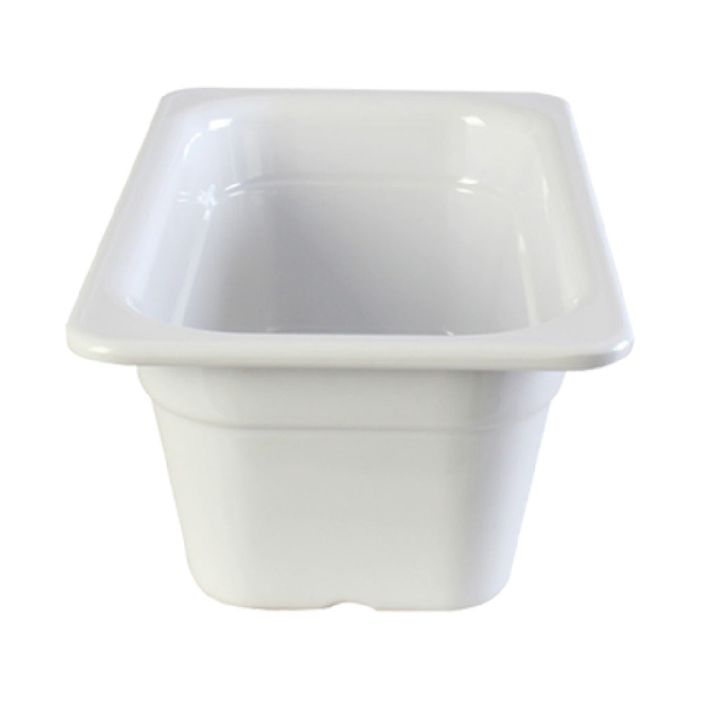 The Thunder Group GN1144W Food Pan - 1/4 GN, 4" Deep is a versatile and indispensable addition to any commercial kitchen or catering service. Crafted from durable melamine, this food pan is both lightweight and resilient, ensuring longevity and ease of use in high-demand environments. Its design features stackable, anti-jamming properties, which facilitate efficient storage and handling, making it ideal for busy professional settings. The pan is suitable for both cold and hot foods, offering flexibility across various culinary applications. With a depth of 4 inches, it provides ample space for food storage and presentation, catering to the needs of diverse food service segments. The pristine white finish enhances its aesthetic appeal while maintaining a clean and professional appearance. Furthermore, being BPA free, this food pan ensures safety and peace of mind for food handlers and consumers alike. The product meets NSF standards, underscoring its compliance with rigorous health and safety regulations. Available with a minimum order of six, the Thunder Group GN1144W Food Pan is an excellent choice for those seeking reliable and high-quality food storage solutions within the food service industry.