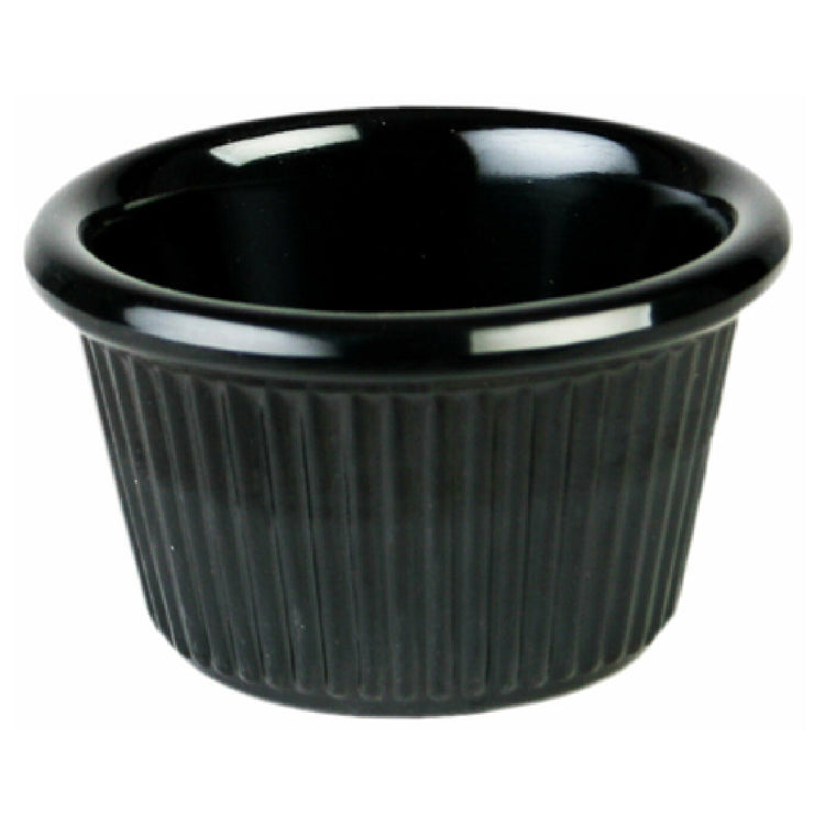The Thunder Group ML507BL1 Ramekin 1-1/2 Oz. Capacity 2-1/2" Dia. is a versatile and durable serving solution designed for a variety of culinary settings. With a compact 1-1/2 oz. capacity and a 2-1/2" diameter, this ramekin is perfect for individual servings of condiments, sauces, or small desserts. The round, fluted design not only adds a touch of elegance but also enhances grip and handling, making it suitable for both casual and formal dining environments. Constructed from break-resistant melamine, this ramekin provides a robust alternative to traditional ceramic options, ensuring longevity and reducing the risk of breakage in busy kitchens. Its black hue offers a sleek, modern look that complements any table setting. The Thunder Group ML507BL1 Ramekin is dishwasher safe, allowing for easy and efficient cleaning, while being BPA free ensures it meets safety standards for food use. Additionally, it holds NSF certification, affirming its quality and safety for professional food service applications. Ideal for restaurants, catering services, and home kitchens alike, this ramekin combines durability with style, catering to the diverse needs of the food industry.