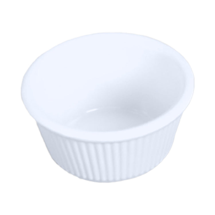 The Thunder Group ML532W1 Ramekin 4 Oz. Capacity 3-3/8" Dia. stands out as a practical and durable solution for various food service needs, combining functionality and resilience. Constructed with high-quality melamine, this ramekin boasts a break-resistant design, ensuring longevity even in bustling kitchen environments. With a capacity of 4 ounces and a diameter of 3-3/8 inches, it is ideally sized for serving condiments, dips, or small portions of side dishes. The round, fluted design adds a touch of elegance, making it suitable for both casual and formal dining settings. Its white color provides a classic look that complements any tableware collection. Being BPA free, this ramekin guarantees safety in food contact, adhering to health standards without compromising on durability. The fact that it is dishwasher safe adds to the convenience, allowing for effortless cleaning after use. Furthermore, this product holds an NSF certification, underscoring its compliance with rigorous public health and safety standards. The Thunder Group ML532W1 Ramekin is a versatile addition for restaurants, catering services, and home use, offering reliability and style in a compact form. Its design and features cater to the diverse demands of the food service industry, ensuring satisfaction across different market segments.