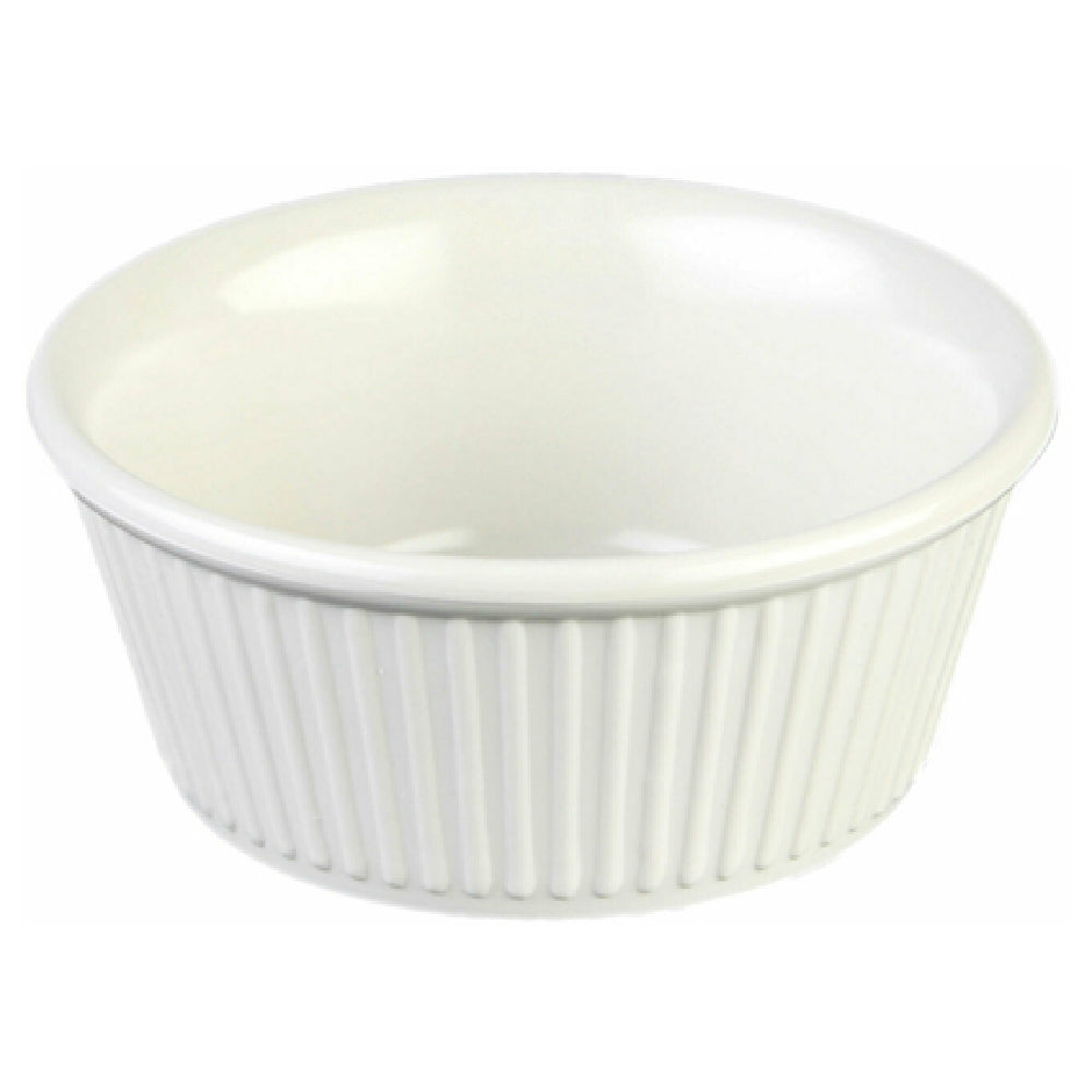 The Thunder Group ML533B1 Ramekin - 3-1/2 Oz. Capacity, 3-3/8" Dia. - is an excellently designed piece of kitchenware, tailored for both commercial and home culinary environments. With a capacity of 3-1/2 ounces and a diameter of 3-3/8 inches, this ramekin is perfect for portion control and presentation of small dishes and desserts. Its round, fluted design adds a touch of elegance, making it suitable for upscale dining settings as well as casual eateries. Crafted from break-resistant melamine, this ramekin ensures both durability and safety in bustling kitchens. It is dishwasher safe, facilitating easy cleanup and maintenance - a crucial aspect for busy restaurants and cafes. Being BPA free, it guarantees that food safety is never compromised. The ramekin's bone color provides a neutral palette that complements any table setting or dish presentation. Finally, the NSF certification underscores its adherence to rigorous public health standards, making it a reliable choice for professional chefs and culinary enthusiasts alike. This ramekin is a versatile and durable solution for any professional kitchen or dining establishment, combining practical functionality with a sophisticated aesthetic appeal.