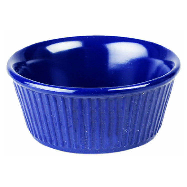 The Thunder Group ML533CB1 Ramekin 3-1/2 Oz. Capacity 3-3/8" Dia. is a meticulously designed piece of serveware that combines functionality with durability, making it ideal for diverse segments in the food service industry. This round ramekin boasts a capacity of 3-1/2 ounces, providing ample space for serving sauces, dressings, or small desserts. With a diameter of 3-3/8", it is compact yet spacious enough for individual servings. The fluted design not only enhances its aesthetic appeal but also offers a secure grip. Crafted from melamine, this ramekin is break-resistant, ensuring longevity even in high-traffic environments. Its dishwasher-safe feature allows for easy cleaning and maintenance, while being BPA-free adds a layer of safety for consumers. Available in a striking cobalt blue, it can add a vibrant touch to any table setting. The NSF certification underscores its compliance with rigorous health and safety standards, making it a reliable choice for restaurants, catering services, and home use. The Thunder Group ML533CB1 Ramekin blends style with practicality, catering to the needs of professionals and home cooks alike who value quality and resilience in their kitchenware.