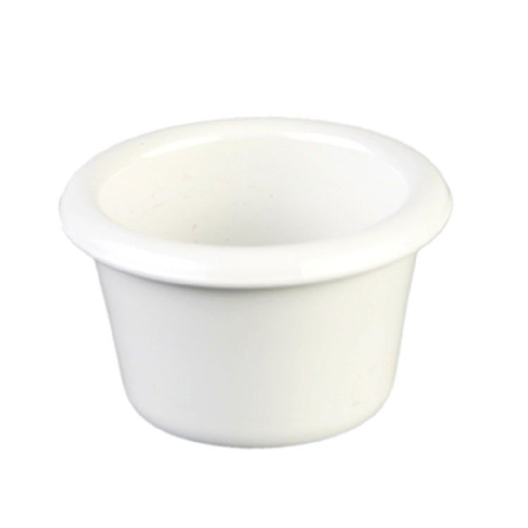 The Thunder Group ML534B1 Ramekin 1-1/2 Oz. Capacity 2-1/2" Dia. is a meticulously designed kitchen essential, perfect for both professional chefs and home cooks seeking quality and durability. With a volume of 1-1/2 ounces and a diameter of 2-1/2 inches, this ramekin is ideal for serving small portions of sauces, condiments, or desserts with precision and style. Its round shape and smooth finish enhance its aesthetic appeal while ensuring easy handling and cleaning. Constructed from break-resistant melamine, this ramekin is not only lightweight but also robust enough to withstand the rigors of daily use, making it a practical choice for bustling kitchens and food service settings. The bone color adds a classic touch to any table setting. Featuring BPA-free materials, it ensures safe food contact, while its dishwasher-safe attribute makes maintenance effortless, saving valuable time in busy environments. Certified by the National Sanitation Foundation (NSF), it meets the highest standards of public health protection. This ramekin's unique combination of aesthetic appeal and functional design makes it an indispensable addition to any culinary establishment, catering to diverse needs across the food service industry with its reliable performance and safety compliance.