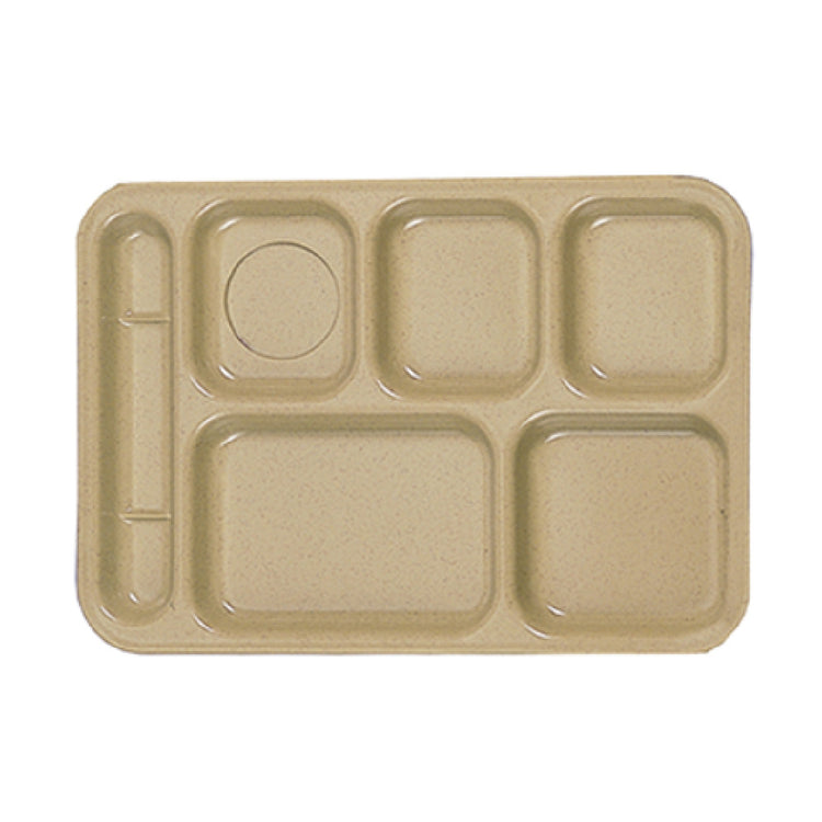 The Thunder Group ML801S Compartment Tray is a meticulously crafted dining solution designed to cater specifically to the needs of left-handed users. With dimensions of 10 inches by 14-1/2 inches, this rectangular tray features six distinct compartments, providing ample space for a well-organized meal presentation. Manufactured from break-resistant melamine, the tray ensures durability and longevity, making it suitable for high-traffic environments such as cafeterias, schools, and hospitals. The sand-colored finish adds a subtle elegance, while its BPA-free construction prioritizes user safety, aligning with modern health standards. This tray is also NSF certified, emphasizing its compliance with stringent public health and safety requirements. Its dishwasher-safe attribute simplifies the cleaning process, making it a practical choice for busy food service establishments. The Thunder Group ML801S Compartment Tray blends functionality with durability, offering a unique solution for left-handed users in various segments of the foodservice industry, from educational institutions to healthcare facilities, where organized meal service is paramount.