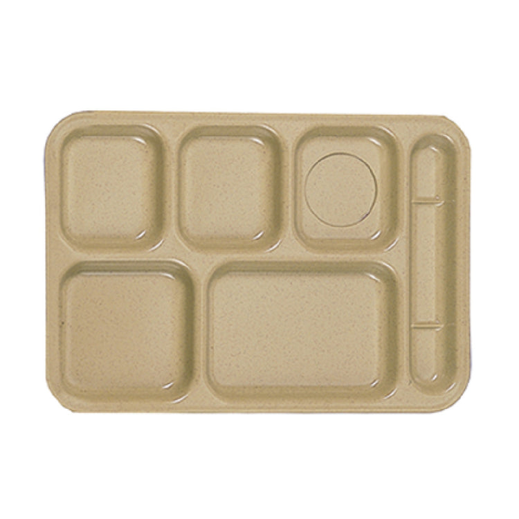 The Thunder Group ML802S Compartment Tray Right-handed 10" X 14-1/2" is a meticulously designed serving solution tailored for various industry segments, including educational institutions, healthcare facilities, and food service environments that demand efficiency and durability. This rectangular tray is crafted from high-quality melamine, ensuring it is break-resistant and capable of withstanding the rigors of daily use. Measuring 10 inches by 14-1/2 inches, it features six compartments that are ideally configured for right-handed users, enhancing ease of use and meal presentation accuracy. The tray's sand color adds a sophisticated touch to any dining setting, while its BPA-free construction underscores a commitment to safety and health standards. It is NSF certified, which affirms its compliance with essential public health and safety regulations. Designed to withstand dishwasher cleaning, this compartment tray offers practicality and convenience in maintenance, catering to high-volume environments where efficiency is paramount. Its superior durability and thoughtful layout make it a staple in settings that prioritize both functionality and aesthetics, providing a reliable solution for organized and user-friendly meal service.