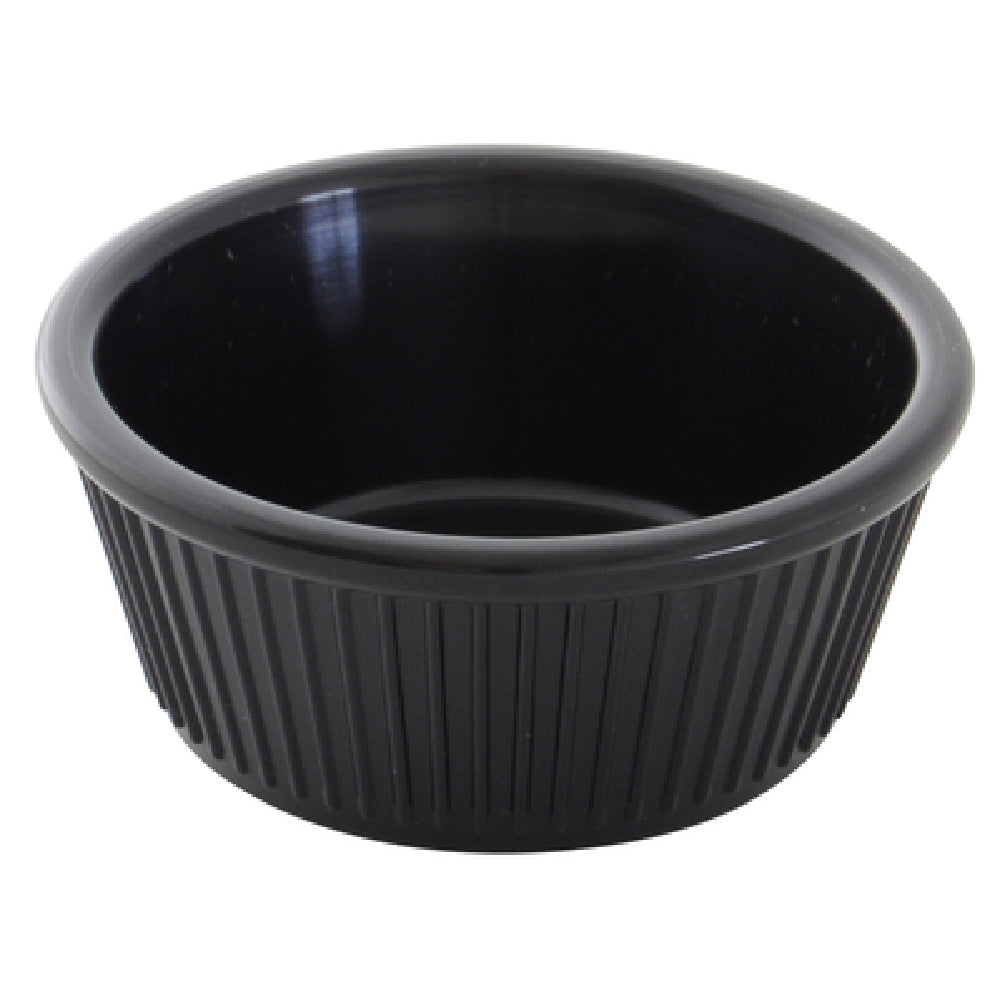 The Thunder Group PL533BL1 Ramekin 3-1/2 Oz. 3-3/8" Dia. is a versatile kitchen essential tailored for a variety of culinary settings. With a capacity of 3-1/2 ounces and a diameter of 3-3/8 inches, this round, fluted ramekin is crafted from durable black plastic. Its BPA-free composition ensures safety, making it a reliable choice for health-conscious environments. The ramekin is also dishwasher safe, streamlining the cleaning process for busy kitchens. Ideal for restaurants, catering services, and home use, the Thunder Group PL533BL1 Ramekin offers practicality and style. Sold by the dozen, this product is suited for both large-scale food service operations and smaller establishments looking to enhance their presentation of dishes. Its sturdy construction and aesthetic appeal make it a valuable addition to any tabletop, capable of enhancing the dining experience by providing a sophisticated touch to desserts, sauces, and side dishes. The minimal order requirement of one dozen ensures that establishments can efficiently stock up on this essential item to meet their diverse serving needs. With a focus on practicality and design, the Thunder Group PL533BL1 Ramekin stands out as a functional and stylish component in professional and home kitchen settings alike.