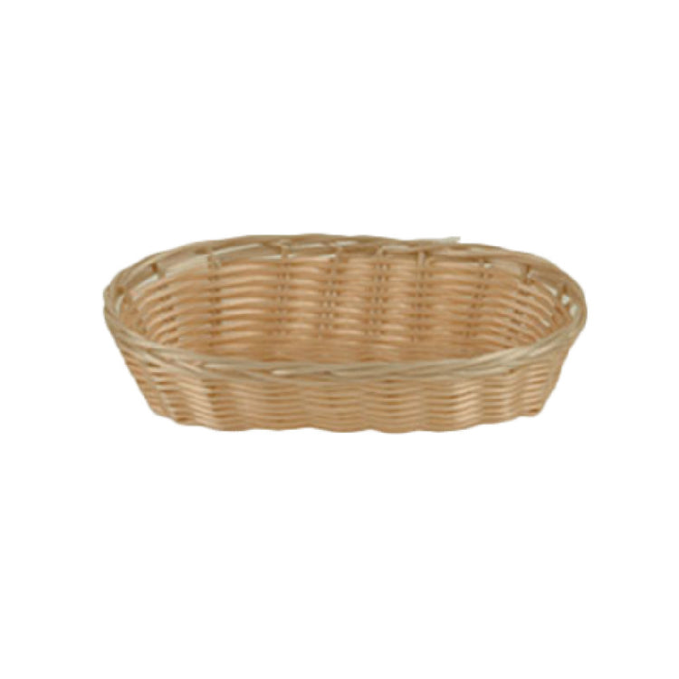 The Thunder Group PLBB850 Basket, measuring 8-1/4" x 4-1/4" x 2", is an oblong, woven basket designed to cater to diverse commercial needs with its practical and durable construction. Crafted from break-resistant plastic, this basket ensures long-lasting utility in high-traffic environments, making it an ideal choice for various segments within the food service industry. Its natural tan color complements a wide range of dining settings, from casual eateries to upscale bistros. The stackable design of the Thunder Group PLBB850 Basket facilitates efficient storage and space-saving, catering to the operational requirements of busy kitchens and dining areas. With a minimum order of 12 pieces, this basket is perfect for businesses looking to maintain consistency in their tableware presentation. Its robust construction and thoughtful design make it a reliable choice for holding bread, appetizers, or condiments, enhancing the dining experience by combining functionality with a touch of elegance. Whether used in a bustling restaurant or a cozy café, the Thunder Group PLBB850 Basket stands out for its resilience and versatility, meeting the demand for quality and practicality in professional food service environments.