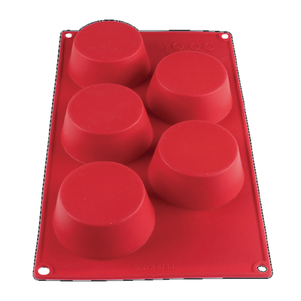 Thunder Group PLBM003S Baking Mold is a versatile kitchen tool designed for efficiency and durability, catering to both amateur bakers and professional chefs. With a capacity of 4-3/5 oz. per cavity, this baking mold features five muffin cavities, providing ample space for batch baking. It is constructed from high-heat silicone, allowing it to withstand a wide temperature range of -40°F to 550°F, making it ideal for a variety of baking applications. The mold's flexible and unbreakable properties ensure long-term usage without the fear of damage. Its non-stick surface promotes easy food release and cleanup, while its stain-resistant quality maintains its red color and pristine condition even after repeated use. Additionally, the mold is dishwasher safe, enhancing convenience for busy kitchens. As an FDA-approved product, it meets stringent safety and health standards, assuring users of its quality and reliability. The Thunder Group PLBM003S Baking Mold is an excellent choice for bakeries, restaurants, and home kitchens, where consistent performance and ease of use are paramount.