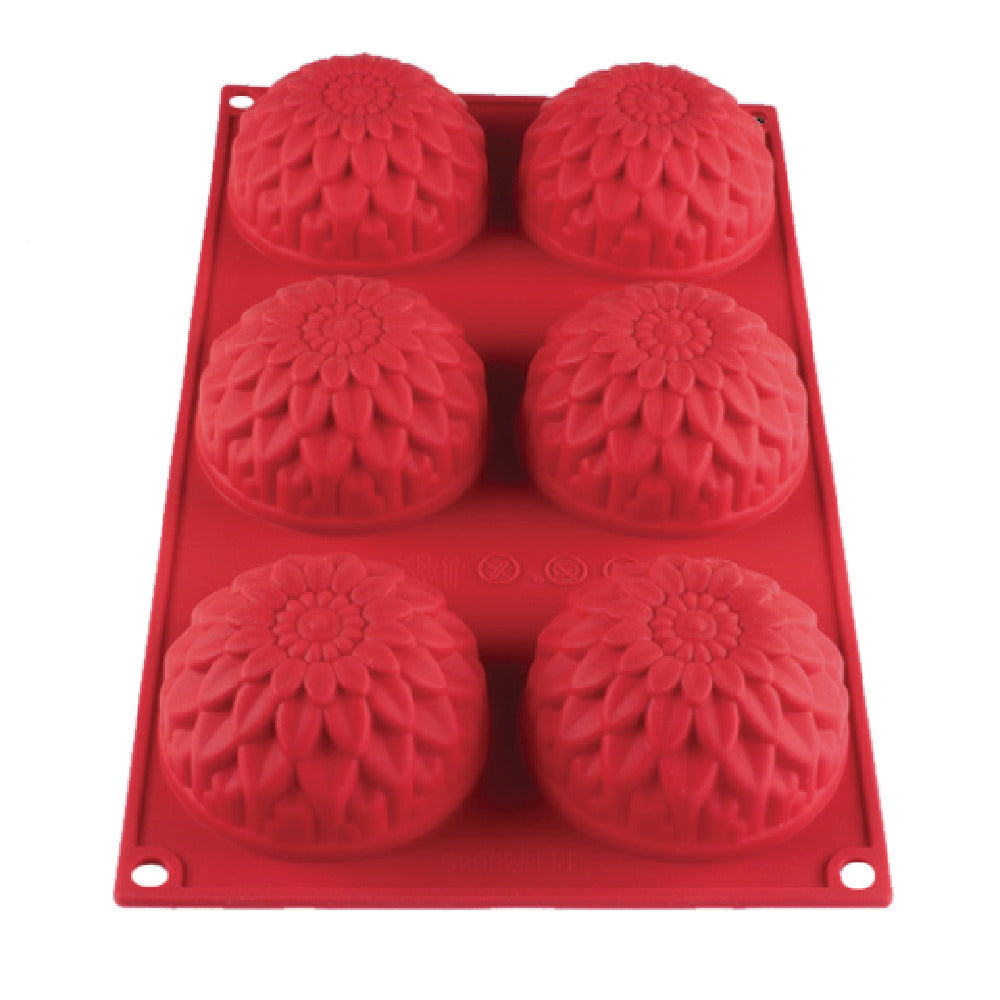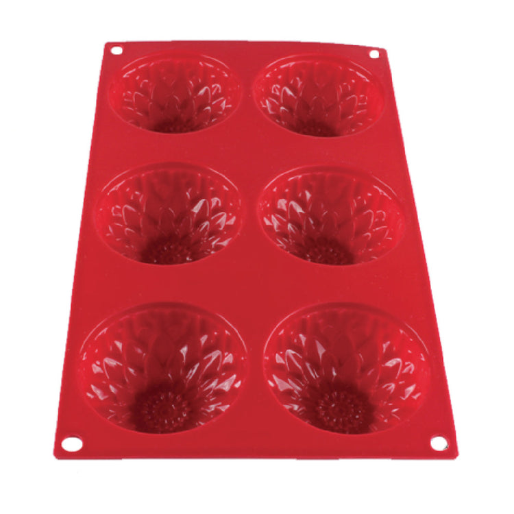 The Thunder Group PLBM005S Baking Mold is an exceptional tool designed for both amateur and professional bakers, boasting a unique value proposition due to its robust construction and versatile features. With a capacity of 3-9/10 oz. per mold, this baking mold is crafted to accommodate small to medium-sized baking needs efficiently. It features six sunflower-shaped cavities, making it ideal for creating aesthetically pleasing baked goods with ease. The mold is constructed from high-heat silicone, known for its flexibility and unbreakable nature, allowing for effortless removal of baked creations without damage. It operates within a wide temperature range from -40°F to 550°F, ensuring it can withstand extreme temperatures for diverse baking applications. This non-stick and stain-resistant mold also offers the convenience of being dishwasher safe, simplifying the cleaning process. The mold is FDA approved, providing assurance of safety and quality standards for food contact materials. Available in an eye-catching red color, it not only performs efficiently but also adds a vibrant touch to any kitchen. The Thunder Group PLBM005S Baking Mold is a reliable choice for bakeries, restaurants, and home kitchens seeking durability, reliability, and innovative design in their baking equipment.