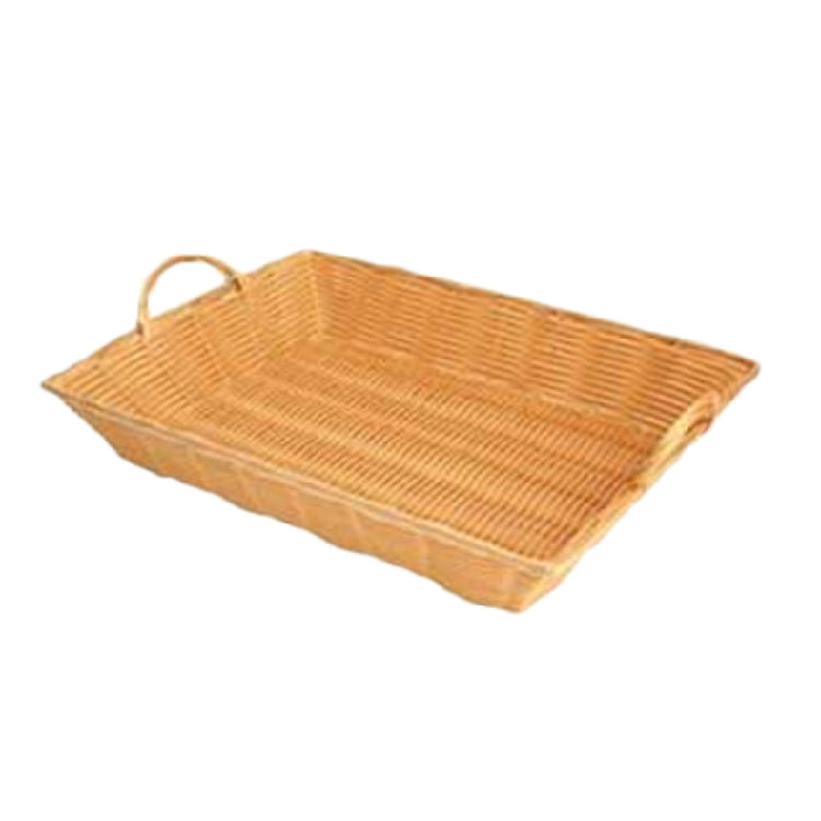 The Thunder Group PLBN1712T Basket is a versatile and durable product designed to meet the needs of various sectors, including hospitality, catering, and home organization. Measuring 17 inches in length, 12-3/4 inches in width, and 3 inches in height, this rectangular basket is spacious enough for a variety of uses. The inclusion of handles enhances its portability, making it easy to transport items efficiently. It is handwoven, showcasing a meticulous craftsmanship that adds an aesthetic appeal to its robust construction. The basket is crafted from break-resistant polypropylene, ensuring longevity and resilience under regular use. Its natural tan color provides a classic look that complements any setting. Notably, the basket is stackable, allowing for space-saving storage solutions. This feature is particularly beneficial in high-paced environments where organization is key. The Thunder Group PLBN1712T Basket is ideal for holding and presenting items, whether for restaurant service, buffet setups, or storing household items. Its combination of practical features and reliable build quality supports diverse market demands, making it a valuable choice for businesses and individuals seeking efficient and attractive storage solutions.