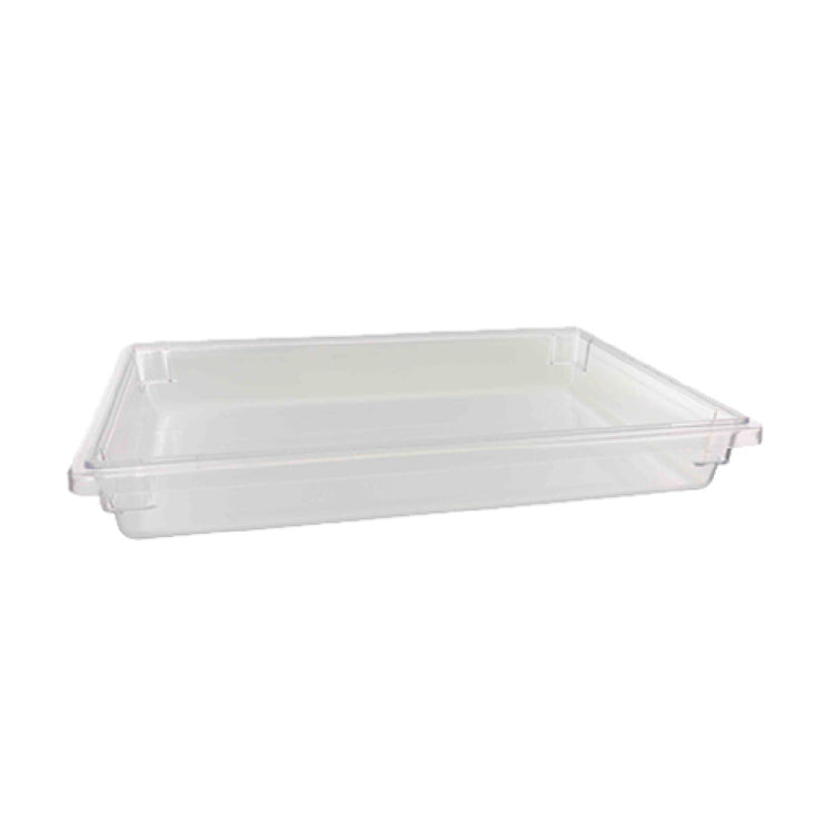 The Thunder Group PLFB182603PC Food Storage Box is a highly durable solution for commercial food storage, engineered to meet the demanding requirements of the food service industry. With a capacity of 5 gallons, this polycarbonate storage box measures 18 inches by 26 inches and has a depth of 3-1/2 inches, making it suitable for storing a variety of ingredients and food items. It is designed to withstand a broad temperature range from -40°F to 210°F, which enables it to be used in both cold storage and heated environments. The shatter and scratch-resistant construction ensures longevity and reliability under frequent use. This storage box is also dishwasher safe, facilitating easy cleaning and maintenance. Its clear design allows for quick identification of contents, streamlining kitchen operations. Additionally, it is NSF certified, ensuring compliance with public health and safety standards. The Thunder Group PLFB182603PC is ideal for restaurants, catering services, and other professional kitchens that require robust and versatile food storage solutions. With a minimum order of six units, it is tailored for businesses that need efficient and reliable storage solutions for their food preparation and storage processes.