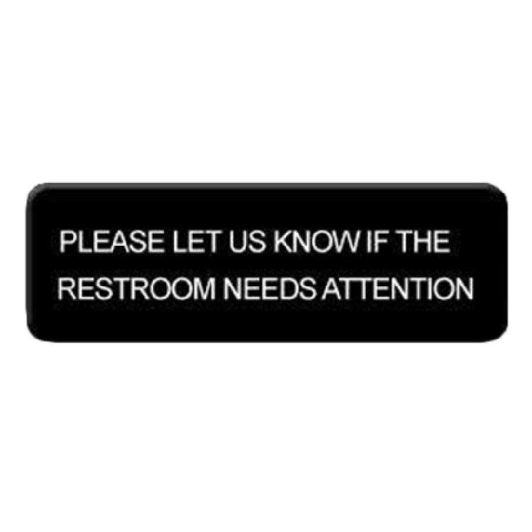 Thunder Group PLIS9334BK Information Symbol Sign 9" X 3" "Please Let Us Know If The Restroom Needs Attention"
