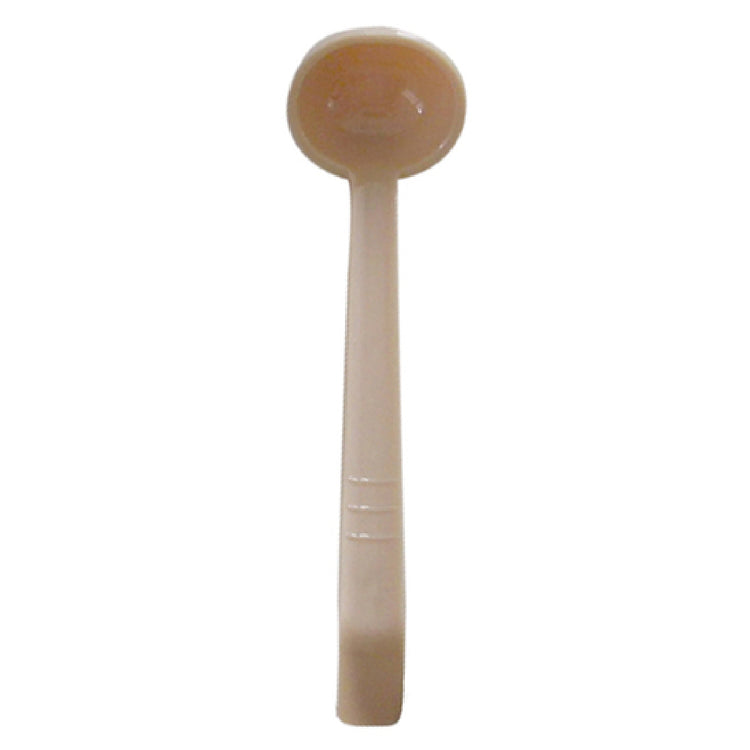 The Thunder Group PLOP010BG Ladle 10-1/2" 1 Oz. is a meticulously crafted kitchen utensil designed for efficiency and durability in professional food service settings. This one-piece ladle measures 10-1/2 inches in length, allowing for easy handling and precise portion control with its 1-ounce capacity, making it ideal for serving soups, sauces, or dressings. Constructed from durable polycarbonate, it is lightweight yet resilient, ensuring longevity even in high-usage environments. The ladle is finished in an elegant beige color, blending seamlessly into a variety of kitchen aesthetics. Importantly, it is NSF certified, ensuring compliance with strict food safety and sanitation standards, which is crucial for maintaining hygiene in culinary operations. A standout feature of this ladle is its dishwasher-safe nature, streamlining the cleaning process and enhancing operational efficiency. With a minimum order requirement of 12 each, it is perfectly suited for bulk purchasing needs of large-scale food service environments, such as restaurants, catering businesses, and institutional kitchens. The Thunder Group PLOP010BG Ladle combines practicality with a robust build, making it an invaluable tool for culinary professionals who demand both performance and reliability in their kitchen operations.