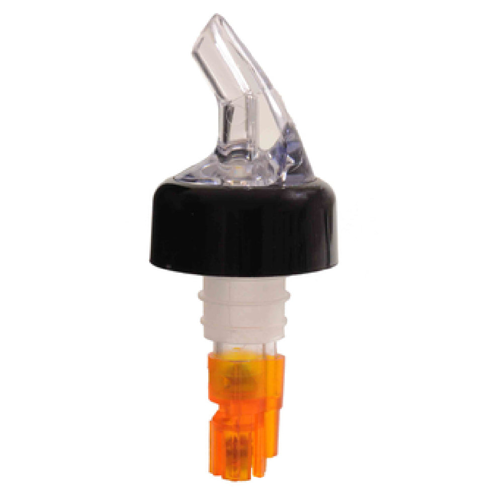The Thunder Group PLPR050C Liquor Pourer 1/2 Oz. With Black Collar is a specialized dispensing accessory designed to enhance the efficiency and precision in beverage service. This liquor pourer is engineered to fit standard 750ml bottles, making it a versatile tool for bars, restaurants, and home use. Constructed from durable SAN plastic, it ensures long-lasting performance and resistance to wear and tear. The clear spout provides visibility for accurate pouring, while the distinctive orange tail aids in quick identification and streamlined service. The inclusion of a black collar not only adds an aesthetic touch but also ensures a snug fit on bottles, preventing leaks and spillage. Each pack contains 12 pourers, facilitating easy stocking and inventory management for high-volume service environments. With its precise 1/2 oz. pour capacity, this accessory is ideal for controlling portions and reducing waste, which is crucial for cost management in the hospitality industry. The Thunder Group PLPR050C Liquor Pourer is a valuable tool for professionals seeking reliable and consistent performance in their beverage dispensing operations, catering to both upscale establishments and casual settings with equal efficacy.