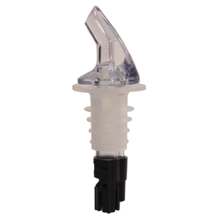 The Thunder Group PLPR063M Liquor Pourer stands as a precision tool for the efficient and controlled dispensing of spirits, ideal for both professional and home bartending environments. With a pour rate of 5/8 oz, this pourer is meticulously designed to fit standard 750ml bottles, ensuring compatibility with a wide array of liquids. Constructed from clear SAN plastic, it offers durability and a seamless visual cue for monitoring the flow of liquor. The absence of a collar provides a sleek, minimalist appearance while ensuring ease of insertion and removal from the bottle. The black tail design not only complements its aesthetic appeal but also enhances its grip and stability during use. Packaged in quantities of 12 per pack, the Thunder Group PLPR063M Liquor Pourer is a cost-effective solution for establishments requiring consistent and reliable service, such as bars, restaurants, and events requiring bulk serving capabilities. Its robust construction and thoughtful design make it a valuable asset for any scenario demanding precision and efficiency in liquid dispensing, catering to diverse market segments within the hospitality industry.