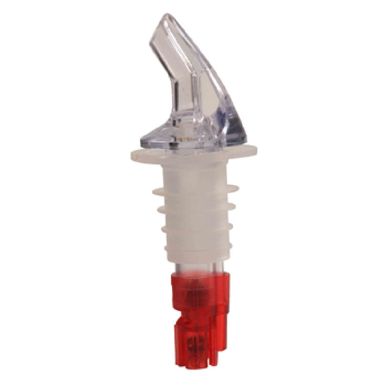 The Thunder Group PLPR100M Liquor Pourer 1 Oz. Without Collar is specifically crafted for those seeking precision and durability in beverage service. This liquor pourer dispenses a consistent 1 oz. pour, ensuring accuracy and efficiency for bartenders and mixologists. Its design accommodates standard 750ml bottles, making it a versatile tool for a wide variety of liquors and spirits. Constructed from SAN plastic, this pourer offers both durability and clarity, featuring a clear spout for easy monitoring of pour levels and a distinctive red tail for quick visual differentiation. Packaged with 12 pourers per pack, it is an excellent choice for bars, restaurants, and catering services looking to maintain consistent service standards across multiple stations or events. The design omits the collar, providing a streamlined appearance and ease of use in fast-paced environments. Its robust plastic construction ensures longevity, even with frequent use. The Thunder Group PLPR100M pourer is an essential accessory for any beverage service operation, offering reliability, precision, and ease of use in a high-quality package.