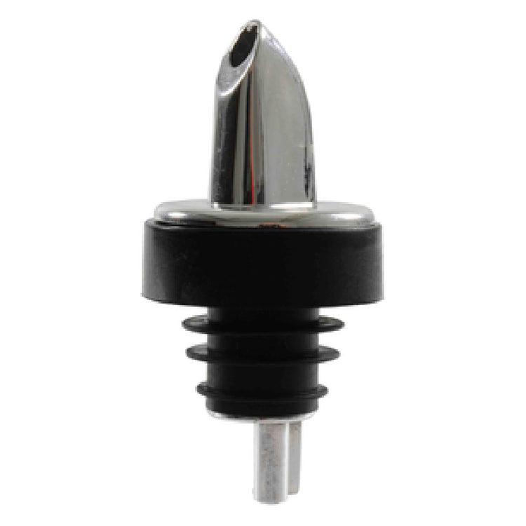 The Thunder Group PLPR506S Liquor Pourer - free flow with a soft black collar - is an essential accessory for bartenders and home enthusiasts alike, designed to enhance precision and consistency in pouring. This pourer is specifically engineered to fit standard 750ml liquor bottles, ensuring versatility across a wide array of spirits and liqueurs. Finished in chrome, the pourer not only boasts durability and style but also provides a sleek and professional aesthetic that complements any bar setting. The soft black collar adds an additional layer of functionality, ensuring a snug fit to prevent spills and leaks, a vital feature for maintaining a tidy and efficient workspace. The product is conveniently packaged with 12 pourers per pack, with a minimum order requirement of 12 packs, catering to the needs of larger volume purchasers such as restaurants, bars, and event venues. The Thunder Group PLPR506S Liquor Pourer is a practical solution for improving service efficiency and accuracy, offering a polished design that meets the demands of the hospitality industry as well as personal use. Its robust construction and elegant appearance make it a valuable tool for anyone seeking to craft the perfect pour every time.