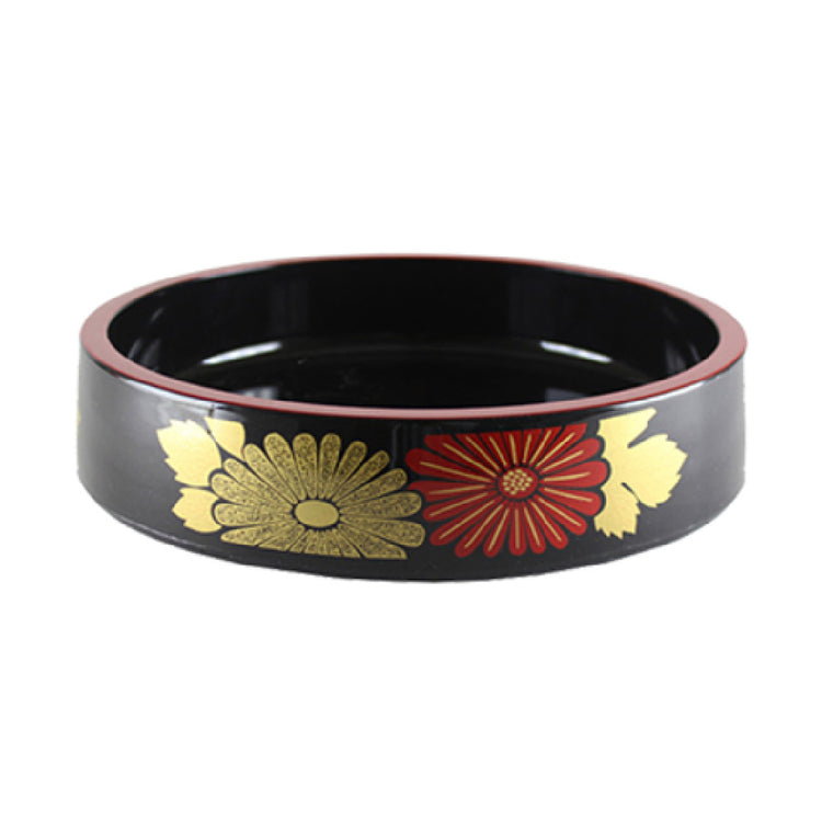 The Thunder Group PLSPT1102 Sushi Party Tray is meticulously designed for both function and aesthetics, making it a versatile and valuable addition to any food presentation setting. With dimensions of 11-3/4 inches in diameter and a height of 2-3/8 inches, this round tray offers ample space for an elegantly arranged sushi display. The tray is crafted from durable ABS plastic, ensuring long-lasting use and resistance to wear, while maintaining a lightweight structure for easy handling. Its black base is adorned with an intricate flower pattern, adding a touch of sophistication and visual appeal, complemented by a striking red trim that enhances its overall design. These features make it an ideal choice for professional caterers, upscale restaurants, and sushi bars looking to elevate their serving presentations. The Thunder Group PLSPT1102 Sushi Party Tray seamlessly blends durability with style, catering to the needs of both high-volume commercial settings and intimate gatherings, where the presentation of culinary creations is paramount.