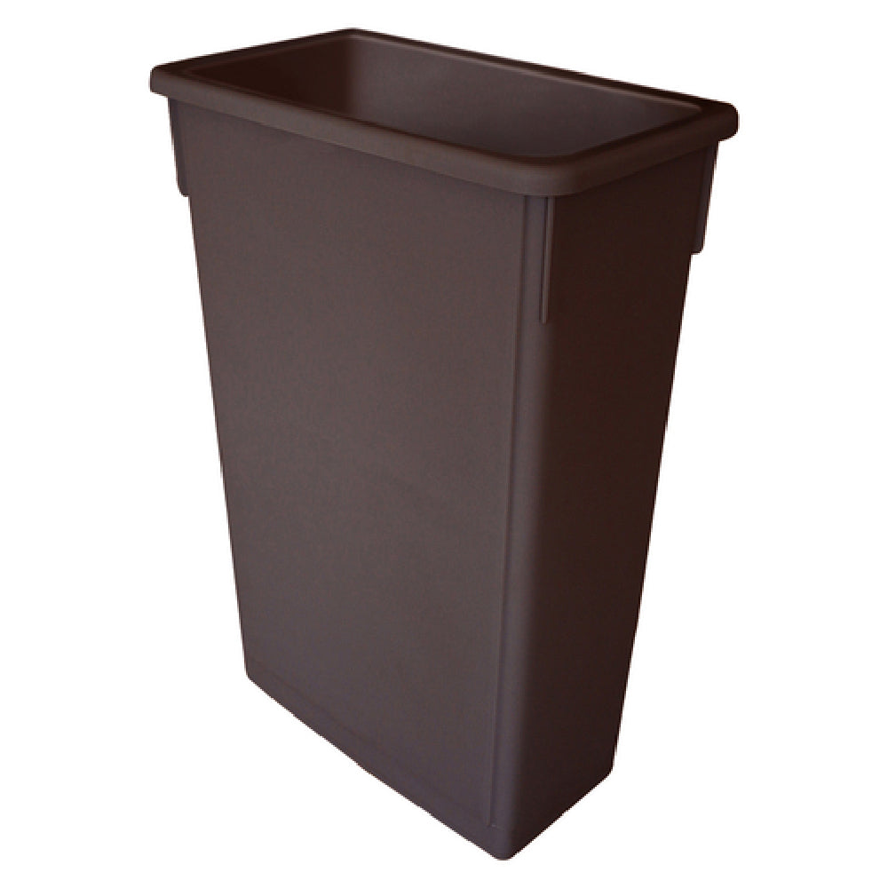 The Thunder Group PLTC023B Trash Can - 23 Gallon Rectangular is a meticulously designed waste management solution suited for diverse industry needs. With a capacity of 23 gallons, this rectangular trash can is crafted from durable plastic, ensuring longevity and resilience in high-traffic environments such as commercial kitchens, hospitality settings, and public spaces. Its flat bottom design provides stability, making it less prone to tipping, which is crucial for maintaining clean and safe surroundings. The brown color of the trash can offers a neutral appearance, allowing it to blend seamlessly into various settings without drawing unnecessary attention. The Thunder Group PLTC023B Trash Can is engineered to withstand the rigors of daily use, making it an essential tool for establishments that prioritize functionality and hygiene. Its robust construction not only enhances its durability but also simplifies cleaning and maintenance processes. This trash can exemplifies Thunder Group’s commitment to providing reliable and efficient waste management solutions, catering to the practical demands of professional environments with a focus on durability and performance. Its thoughtful design ensures it meets the needs of different market segments, from restaurants to office spaces, delivering exceptional value through its sturdy and user-friendly features.
