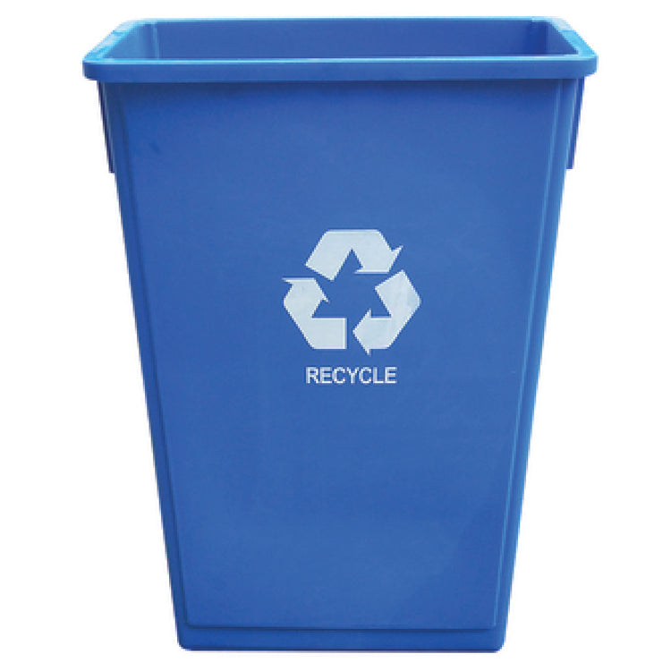The Thunder Group PLTC023R Recycling Container - 23 Gallon Rectangular is a versatile and durable recycling solution designed to meet the needs of various sectors, including commercial, industrial, and residential markets. With its substantial 23-gallon capacity, this rectangular container is adept at handling significant volumes of recyclable materials, making it ideal for high-traffic areas and environments aimed at sustainability. Crafted from resilient plastic, it ensures long-lasting use while maintaining its structural integrity under demanding conditions. The container's blue color, adorned with a recycle logo, not only signifies its purpose but also encourages responsible waste management practices. Featuring a flat bottom, the container offers stability and easy positioning, enhancing user convenience. The Thunder Group PLTC023R Recycling Container's design is not only practical but also space-efficient, allowing for seamless integration into existing waste management systems. Its robust construction provides assurance of durability, catering to both indoor and outdoor usage, and confidently supporting environmental initiatives by facilitating efficient recycling processes. This recycling container serves as an indispensable tool across industries focused on reducing their ecological footprint, making it an asset in the pursuit of sustainable waste management strategies.