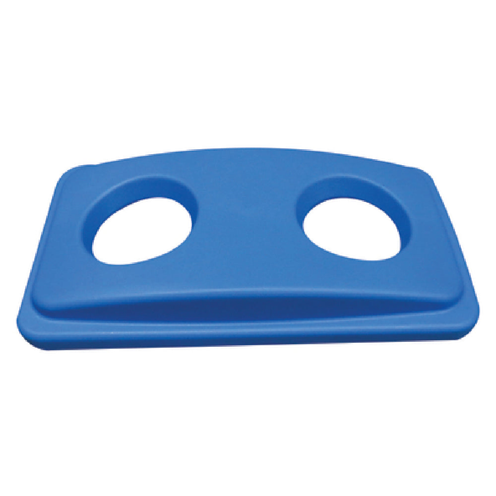 The Thunder Group PLTC023RC Recycling Container Lid - Rectangular For Bottles & Cans (2-holes) is an innovative product designed to enhance waste management efficiency in diverse settings. This lid, crafted from durable plastic, is specifically tailored to fit the PLTC023R recycling container, ensuring a secure snap-on fit that minimizes spillage and contamination. The distinctive rectangular design features two designated holes, making it particularly suitable for the segregation and recycling of bottles and cans. Its blue color not only signifies its purpose but also aids in visually distinguishing it from other types of waste containers. This makes the Thunder Group PLTC023RC an indispensable asset for businesses aiming to streamline their recycling processes in commercial, industrial, and institutional environments. The use of high-quality materials ensures longevity and reliable performance, making it a cost-effective solution for recycling needs. This product stands out due to its precise engineering and functionality, offering users a practical approach to sustainable waste management practices. Its thoughtful design caters to the operational demands of establishments prioritizing environmental responsibility, while its user-friendly features facilitate ease of use and maintenance.