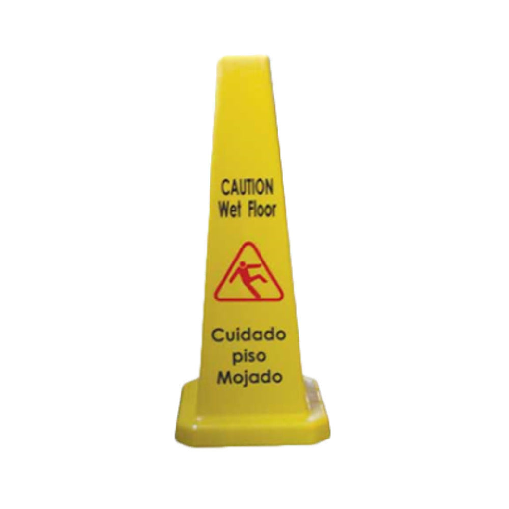 The Thunder Group PLWFC027 Safety Floor Sign - "Caution/Wet Floor" - 27" tall is a meticulously designed safety cone, playing an essential role in ensuring workplace safety across various industries. Standing at an impressive 27 inches, this dual-sided cone-shaped sign is crafted from durable plastic, ensuring longevity and visibility in high-traffic areas. Its vibrant yellow color enhances its visibility, making it an ideal choice for environments like restaurants, hotels, hospitals, and retail spaces where the risk of slips and falls due to wet surfaces is prevalent. The dual-sided design facilitates clear communication from multiple angles, maximizing its effectiveness as a warning tool. This sign is not only lightweight, making it easy to transport and position, but it also maintains stability once placed, a crucial factor in environments requiring frequent cautionary alerts. The Thunder Group PLWFC027 is distinguished by its practicality and reliability, making it an invaluable asset in maintaining safety standards and minimizing accident risks in any professional setting. Its straightforward design focuses on functionality, catering to a diverse range of industries that prioritize safety and efficiency.