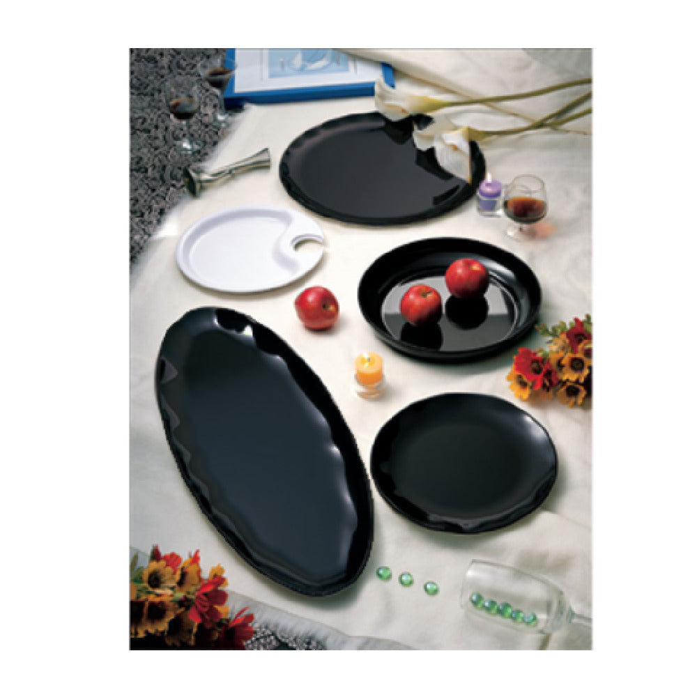 The Thunder Group RF1006BW Salad Plate 8-1/8" Dia. Round is an exemplary addition to any dining collection, marrying durability with a refined aesthetic. With a precise diameter of 8-1/8 inches, this round plate is designed with a distinctive scallop edge that adds a touch of elegance to every meal presentation. Constructed from high-quality melamine, this plate is not only BPA free, ensuring safety for users, but also break-resistant, making it a reliable choice for both residential and commercial settings. Its two-tone Black Pearl finish provides a sophisticated and modern look, appealing to diverse segment markets including upscale restaurants, catering services, and everyday home use. Additionally, the plate is dishwasher safe, offering convenience for fast-paced kitchen environments. Certified by NSF, this salad plate meets rigorous public health standards, enhancing its appeal to those prioritizing safety and compliance. Available with a minimum order of 12, the Thunder Group RF1006BW Salad Plate is a versatile and practical choice for professionals seeking a blend of functionality and style in their serveware.