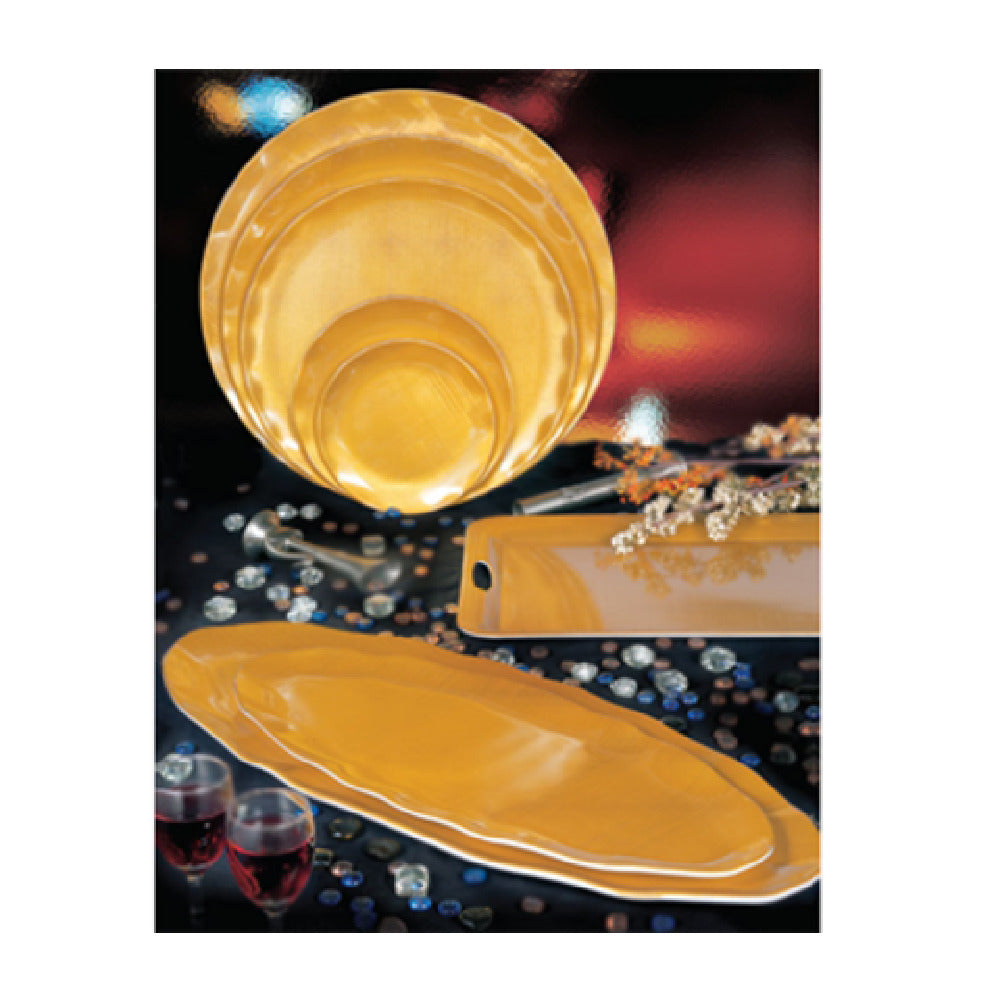 The Thunder Group RF1010G Dinner Plate is a 10-1/2" diameter round plate designed to meet the demands of both commercial and home dining environments. With its scallop edge, this dinner plate not only enhances presentation but also adds a touch of elegance to any table setting. Crafted from melamine, a durable and break-resistant material, it ensures longevity and reliability, making it ideal for high-traffic dining areas and busy kitchens. The plate is dishwasher safe, simplifying the cleaning process and ensuring hygiene is maintained effortlessly. Importantly, this dinner plate is BPA free, addressing health concerns and catering to consumers seeking safer dining solutions. The Gold Pearl finish adds a sophisticated aesthetic, making it suitable for upscale dining experiences. Certified by NSF, it meets rigorous public health standards, further reinforcing its suitability for use in professional food service settings. Sold in sets of six, the Thunder Group RF1010G Dinner Plate is a versatile and practical choice for restaurants, catering services, and households looking to combine style with functionality in their dining ware.