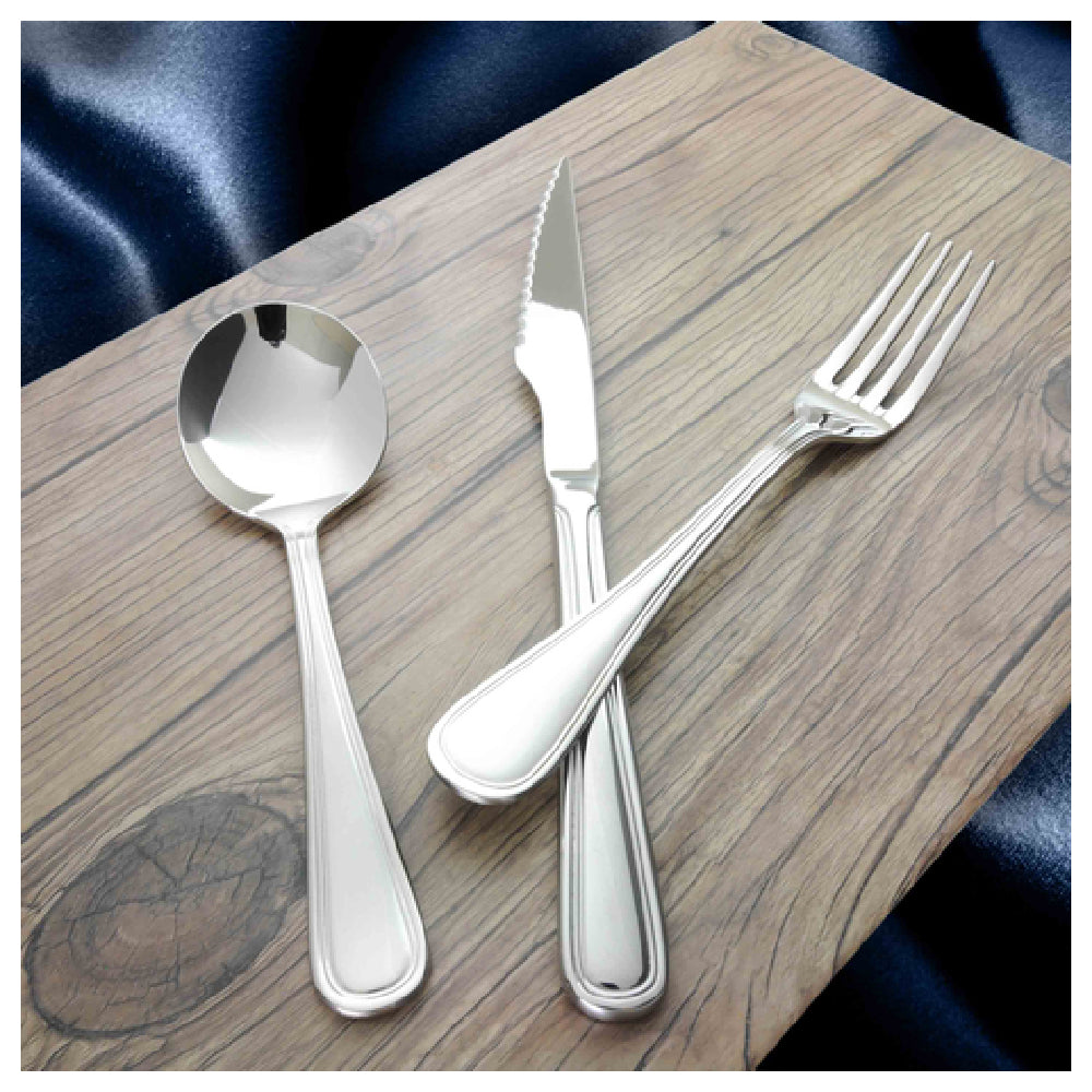 The Thunder Group SLAT219 Salad Knife - 8-2/5" Long 8.2mm Thick - is a specialized culinary tool crafted to enhance precision and efficiency in salad preparation. This salad knife measures 8-2/5 inches in length and has a substantial thickness of 8.2mm, lending durability and strength to its design. Constructed from 420 stainless steel, renowned for its corrosion resistance and edge retention, this knife offers a reliable and long-lasting performance, especially suited for professionals in the culinary industry. The Atlantic series signifies a commitment to quality and functionality, appealing to both professional chefs and home cooks who seek superior kitchen tools. With its meticulously engineered dimensions, the Thunder Group SLAT219 Salad Knife is ideal for the precise cutting of delicate greens and vegetables, ensuring clean cuts that preserve the freshness of ingredients. This knife seamlessly integrates into various market segments within the culinary industry, from restaurant kitchens that require consistent performance to catering services that demand reliability and ease of use. Its robust construction and practical design make it a versatile and indispensable tool for anyone aiming to achieve excellence in food preparation.