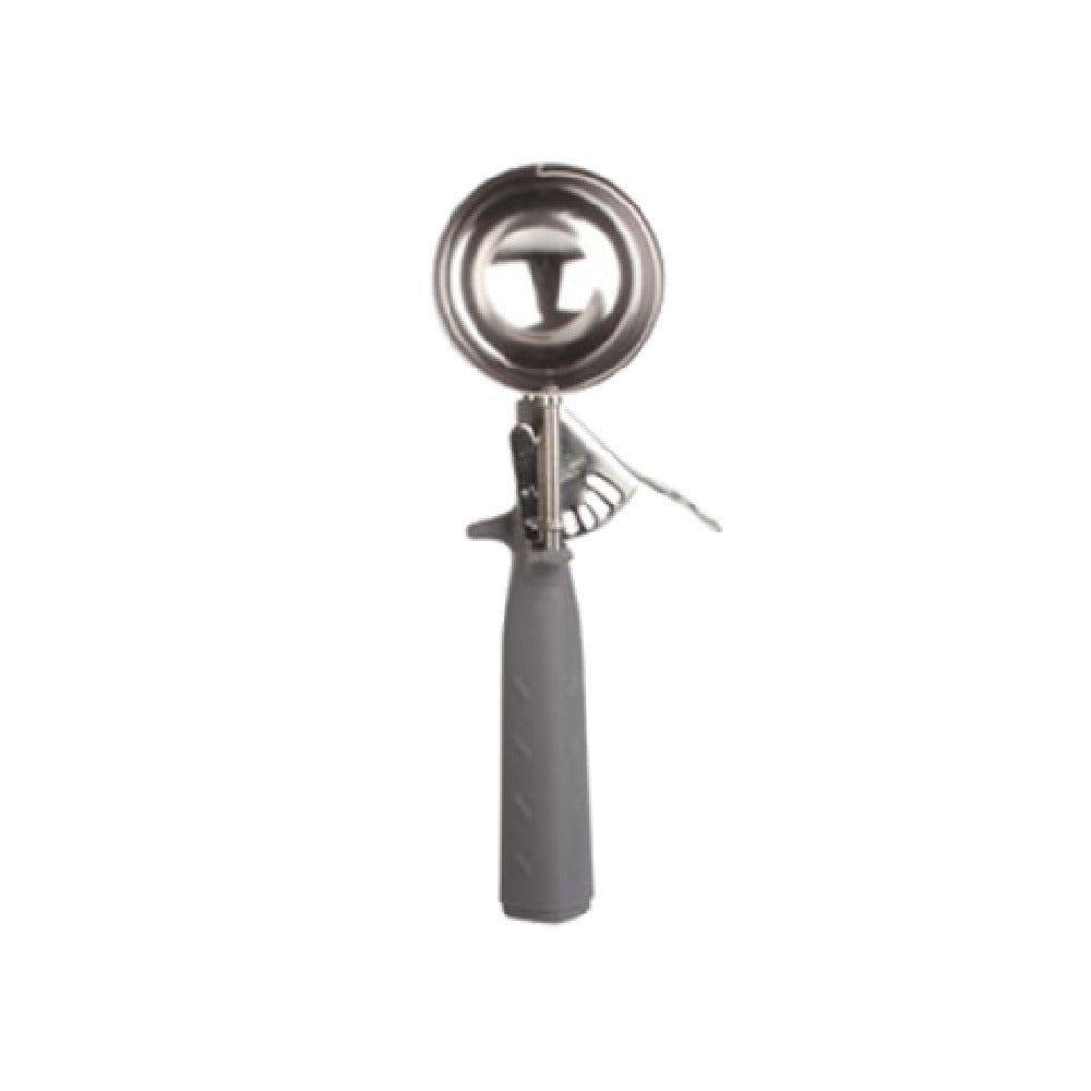The Thunder Group SLDS208P Disher Size-84 Oz. Round Bowl is a specialized kitchen tool designed for precision and efficiency in food service environments. This disher is engineered with a size-8, round bowl that accommodates 4 oz. capacities, making it ideal for portion control and consistent serving sizes. The thumb style mechanism ensures ease of use, allowing for quick and precise scooping. Constructed from high-quality 18/8 stainless steel, it is durable and resistant to corrosion, ensuring longevity in demanding kitchen settings. The one-piece color-coded handle, finished in grey, provides a comfortable grip while allowing for easy identification among other utensils, enhancing operational efficiency. Its NSF certification underscores its compliance with strict public health and safety standards, ensuring it is suitable for professional use. This disher is an excellent choice for a variety of food service segments, including catering companies, restaurants, and institutional dining facilities, where precision, hygiene, and durability are paramount. With its combination of technical features and thoughtful design, the Thunder Group SLDS208P Disher is a reliable tool for culinary professionals who prioritize quality and consistency in their food preparation processes.
