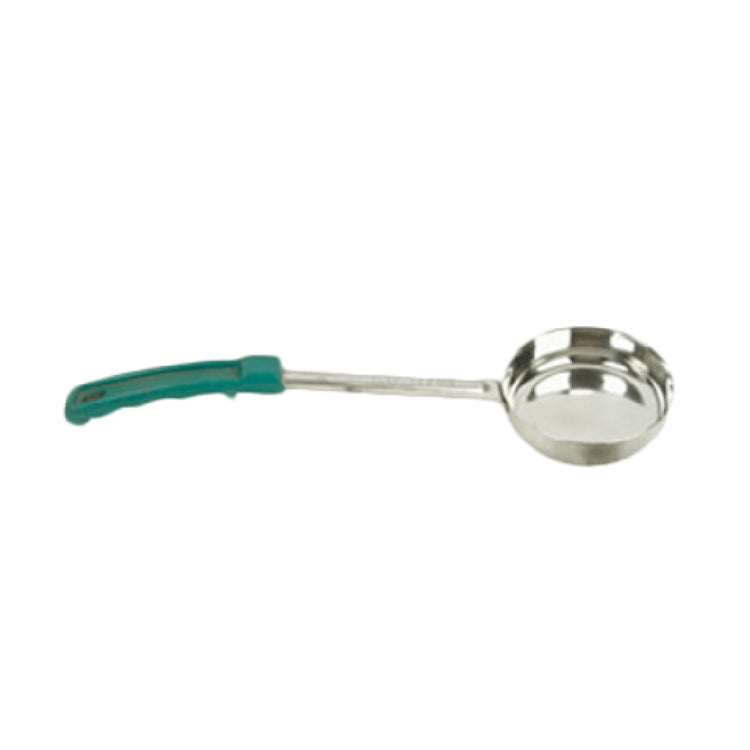 The Thunder Group SLLD006 Portion Controller, with its 6 oz. solid capacity, is an essential tool for precision and efficiency in food service operations. Its two-piece construction underscores its durability, combining a stainless steel build with a plastic color-coded handle for easy identification and handling. This portion controller is designed to meet the demands of high-volume kitchens, whether in restaurants, catering services, or institutional dining settings. The green handle not only enhances visual organization but also aids in portion control, ensuring consistent food service and cost management. Available with a minimum order of 12 pieces, it is suitable for establishments looking to maintain uniform serving sizes across their menu offerings. This practical and professional kitchen tool is perfect for chefs and kitchen staff who require reliability and ease of use in day-to-day operations, making it a versatile solution for various culinary environments. By integrating this portion controller into their service routines, businesses can benefit from improved operational efficiency and customer satisfaction through precise serving capabilities.
