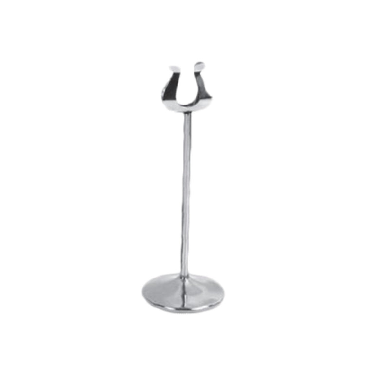 The Thunder Group SLMH008 Table Card Stand - 8" Tall Harp Style is a meticulously crafted piece designed to enhance the presentation of table cards in various professional settings. This table card stand features a sleek harp style, offering both functionality and elegance. Measuring 8 inches in height, it provides an optimal viewing angle for guests or patrons, making it suitable for use in restaurants, conferences, or event venues where clear communication is essential. The stand is constructed from high-quality stainless steel, ensuring durability and resistance to wear and tear, even in high-traffic environments. Its weighted base adds stability, preventing tipping or movement, which is critical in maintaining a professional display. The combination of its elegant design and sturdy construction makes the Thunder Group SLMH008 a versatile choice for different market segments, including hospitality, corporate events, and wedding planning. By integrating a refined aesthetic with practical functionality, this table card stand represents an excellent investment for those seeking a reliable and stylish solution for displaying table cards.