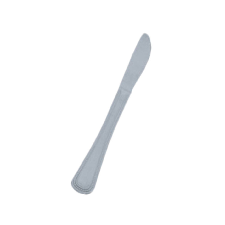 The Thunder Group SLNP009 Dinner Knife 8.58" 18/0 Stainless Steel is a meticulously crafted utensil that stands out in the culinary industry for its blend of functionality and elegance. Constructed from 18/0 stainless steel, this dinner knife is designed to resist corrosion, making it a durable choice for both home kitchens and professional dining establishments. The knife features a mirror-finish, enhancing its aesthetic appeal and making it a perfect fit for upscale dining settings. Measuring 8.58 inches in length, it offers a comfortable grip and balanced weight, ensuring ease of use for diners. The "Jewel" designation signifies its refined design, which adds a touch of sophistication to any table setting. This knife's robust construction and timeless design make it a versatile tool suitable for everyday use in restaurants, catering services, and banquet halls, while also being an exquisite addition to formal events and special occasions. Its stainless steel composition ensures long-lasting performance and ease of maintenance, making it a practical choice for various market segments within the food service industry. The Thunder Group SLNP009 Dinner Knife is a testament to quality craftsmanship and is tailored to meet the diverse needs of its users.