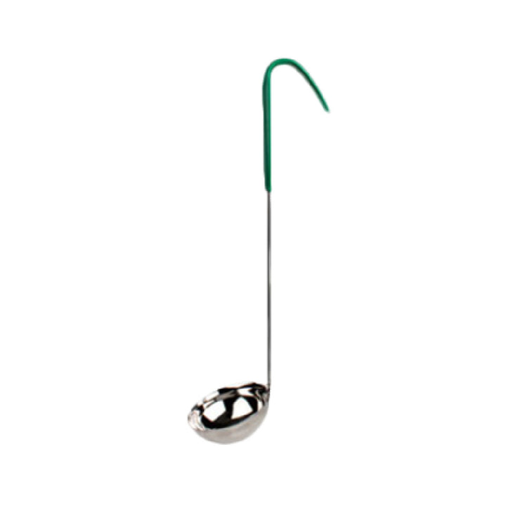 The Thunder Group SLOL205 Serving Ladle 4 Oz. One Piece is an essential tool for food service professionals seeking reliability and efficiency in their kitchen operations. This ladle is crafted from durable stainless steel, ensuring longevity and resistance to corrosion. It features a one-piece construction, enhancing its strength and ease of cleaning, which is crucial for maintaining high hygiene standards. The ladle's 4 oz. capacity makes it ideal for precise portion control, an essential aspect in both commercial kitchens and catering services. A unique aspect of this ladle is its color-coded vinyl handle, which is green, allowing for easy identification and reducing the risk of cross-contamination in a busy kitchen environment. The handle is also heat-resistant, withstanding temperatures up to 392°F, making it a versatile tool for handling hot liquids safely. With a minimum order quantity of 12 pieces, this serving ladle is designed to meet the needs of large-scale operations, including restaurants, hotels, and institutional food services. Its combination of practical features and sturdy construction positions the Thunder Group SLOL205 Serving Ladle as a valuable asset in any food service context, where precision and durability are paramount.