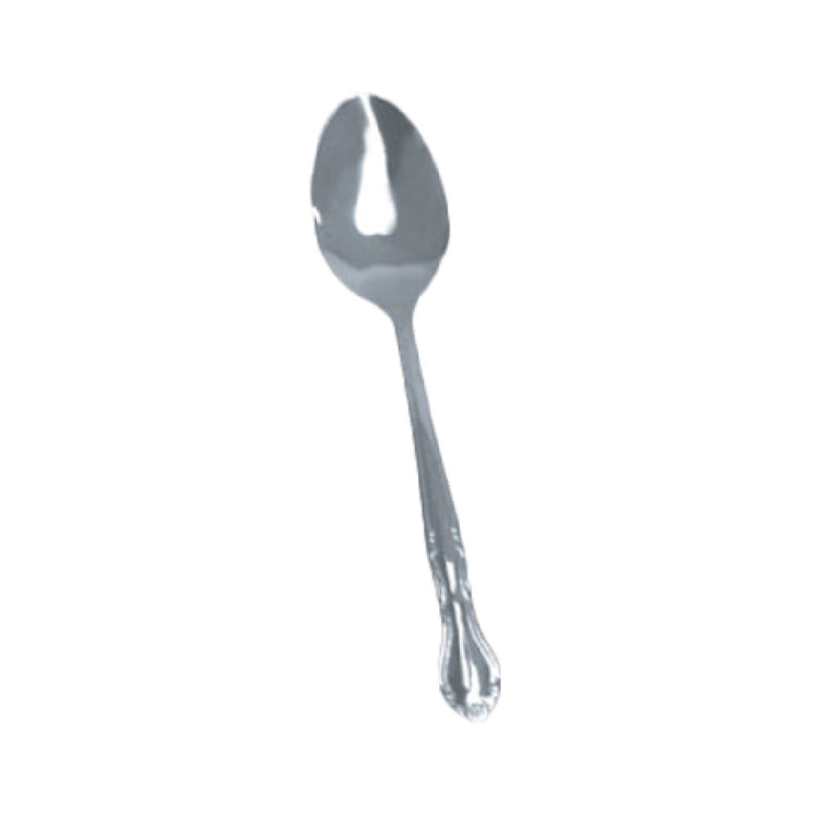 The Thunder Group SLSF114 Dessert Spoon - 7.32" 18/0 Stainless Steel is an elegantly crafted utensil designed for both professional and home dining experiences. Measuring 7.32 inches in length, this dessert spoon is perfectly sized for a variety of sweet treats, making it an ideal addition to any table setting. Constructed from 18/0 stainless steel, it promises a balanced combination of durability and affordability, catering to diverse market segments ranging from casual dining establishments to upscale restaurants. The bright finish adds a touch of sophistication, enhancing the dining ambiance while reflecting a commitment to quality and aesthetic appeal. The spoon's design, known as "Sunflower," suggests a harmonious blend of functionality and style, catering to both aesthetic and practical needs within the food service industry. Whether used in a bustling restaurant or a quiet café, this dessert spoon serves as a reliable and stylish choice for serving desserts, reflecting a universal appeal across various culinary settings. Its robust construction ensures longevity, making it a cost-effective solution for high-volume usage in professional kitchens, while its sleek design offers an elegant touch for individual consumers seeking to elevate their dining experiences.