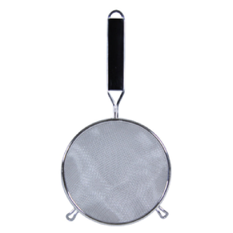 The Thunder Group SLSTN5206PB Strainer - 6" Dia. Double Fine Mesh Black Plastic Handle is a high-quality kitchen tool designed to cater to the diverse needs of culinary professionals and home chefs alike. This strainer features a 6-inch diameter with a double fine mesh, making it ideal for precision straining tasks that require the removal of small particles from liquids or solids. Crafted from durable stainless steel, it ensures longevity and resistance to rust and corrosion, providing reliable performance over time. The black plastic handle offers a comfortable grip, reducing hand fatigue during extended use and providing heat resistance for safety. This strainer is designed to meet the demands of professional kitchens with a minimum order quantity of 12 pieces, making it a practical choice for restaurants, catering services, and large-scale food preparation environments. The combination of its fine mesh and sturdy construction makes it particularly valuable for tasks such as sifting flour, straining sauces, or rinsing rice, where precision is paramount. The Thunder Group SLSTN5206PB Strainer is an indispensable tool for any culinary setting that values efficiency, durability, and high-quality performance.