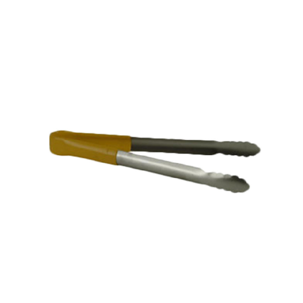 The Thunder Group SLTG1600Y Utility Tongs 16" L One-piece is a meticulously crafted kitchen tool designed to cater to diverse culinary and food service needs. These utility tongs are 16 inches in length, making them ideal for reaching into deep pots or handling large cuts of meat with ease. Constructed as a one-piece unit, they provide enhanced durability and reliability in demanding kitchen environments. The heavy-duty stainless steel composition ensures that these tongs withstand frequent use and resist corrosion, making them a long-lasting asset in any professional kitchen. The non-slip, color-coded handle, distinguished by its vibrant yellow hue, adds a layer of safety and efficiency, facilitating quick identification and minimizing cross-contamination in busy kitchen settings. This feature is particularly beneficial in environments where strict hygiene and food safety standards are upheld. Sold with a minimum order quantity of 12, these utility tongs provide a practical and cost-effective solution for restaurants, catering businesses, and institutional kitchens seeking reliable and sturdy kitchen tools. The Thunder Group SLTG1600Y Utility Tongs stand out in the market due to their robust construction, user-friendly design, and thoughtful incorporation of color coding, enhancing both functionality and safety across various applications in the food service industry.