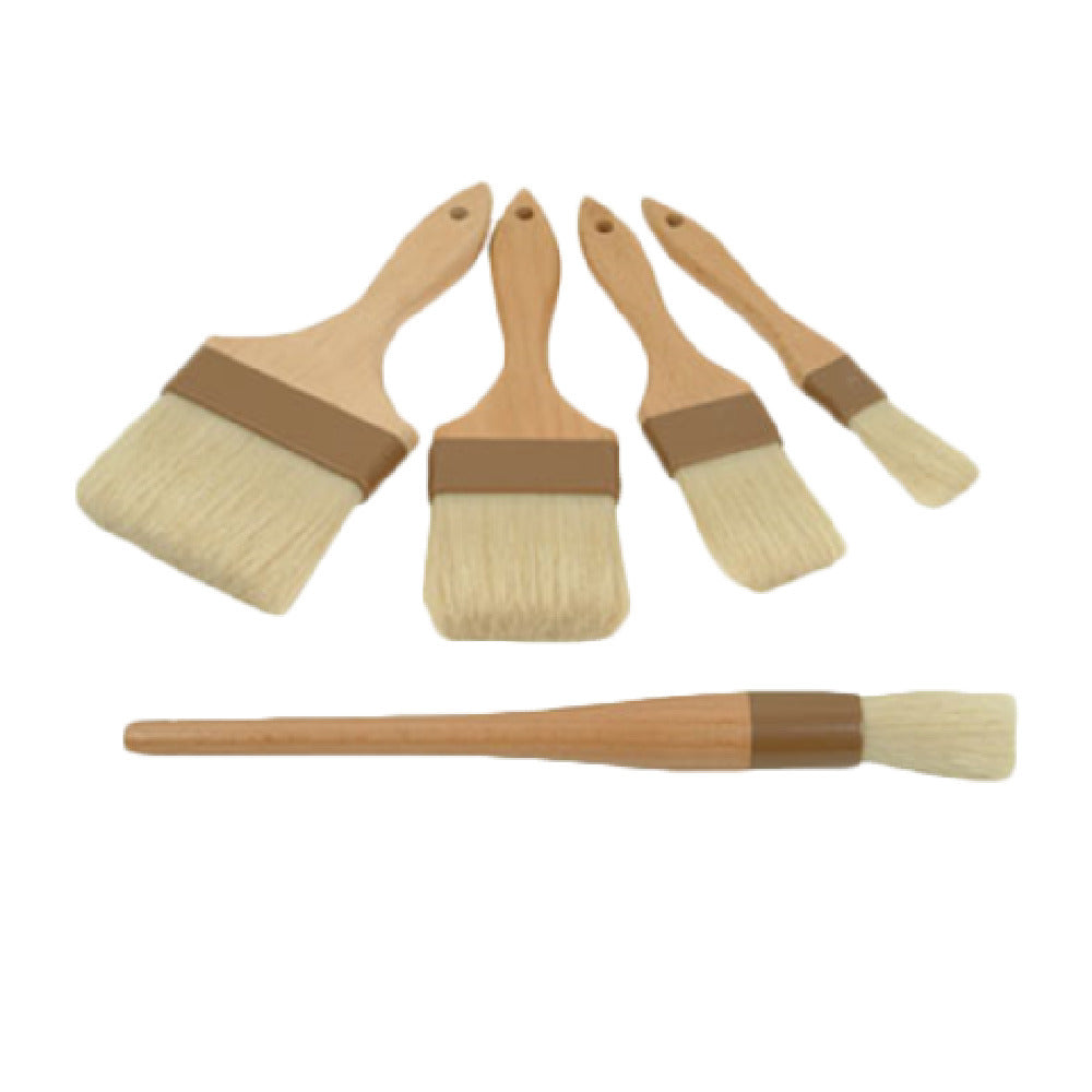The Thunder Group WDPB002 Pastry Brush - 1-1/2" Wide Flat is a precision tool designed for culinary professionals seeking reliable performance. This pastry brush features a 1-1/2-inch wide flat surface, making it ideal for spreading glazes, sauces, or egg washes evenly over pastries and baked goods. The brush is crafted with sterilized and bleached boar bristles, known for their superior liquid retention and even application, which are embedded in epoxy for durability. It is equipped with a brown plastic ferrule, ensuring a secure attachment of the bristles to the brush handle. The wooden handle provides a comfortable grip, facilitating ease of use during extended cooking or baking sessions. Available with a minimum order quantity of 12, this pastry brush is suitable for large-scale foodservice operations, bakeries, and professional kitchens. Its robust construction and efficient design make it a valuable tool for culinary professionals who require high-quality utensils to enhance their food preparation processes. The Thunder Group WDPB002 Pastry Brush embodies a blend of functionality and durability, offering consistent and reliable performance for various culinary applications.