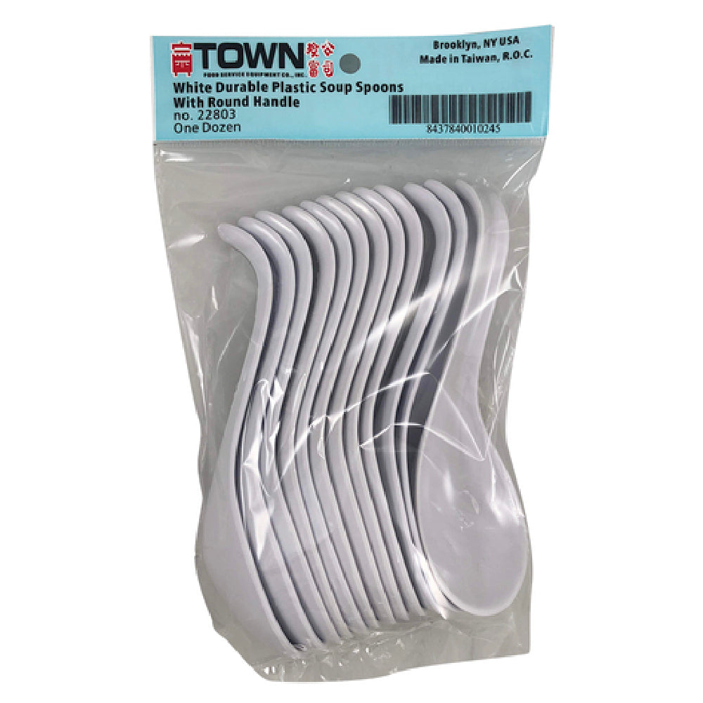 Town 22803/GR Chinese Soup Spoon With Hook Handle White Plastic (case Of 12 Dozen) -