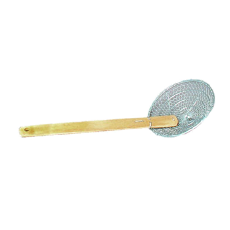 The Town 42506-DZ Skimmer 6" Dia 10-3/4" Bamboo Handle is a meticulously designed kitchen tool, notable for its round stainless steel structure and fine mesh construction, which ensure efficient skimming capabilities. This skimmer boasts a 6-inch diameter, allowing for the effective removal of food particles or debris from liquid dishes, making it essential for both professional and home kitchens. The ergonomic 10-3/4-inch bamboo handle offers a comfortable grip, enhancing user experience with its natural feel and lightweight properties, which reduce fatigue during prolonged use. Crafted to meet the demands of rigorous kitchen environments, the skimmer's stainless steel composition ensures durability and resistance to corrosion, maintaining its performance and aesthetic appeal over time. Sold in a dozen, the Town 42506-DZ Skimmer is an invaluable asset for large-scale operations, including restaurants and catering services, providing the quantity and quality needed for high-volume food preparation. This product's thoughtful design aligns with industry standards, catering to a diverse range of culinary requirements and preferences. Whether used in a bustling commercial kitchen or a simple home setting, this skimmer's precise specifications make it a reliable and efficient tool for various cooking needs.