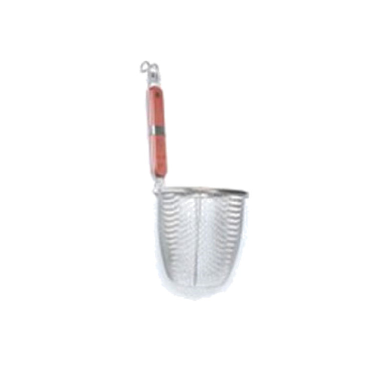 The Town 42616 Noodle Skimmer is engineered with precision for culinary professionals, featuring a 5-1/2 inch diameter and a 5-3/4 inch depth, making it an essential tool for efficiently skimming noodles and other delicate ingredients. Constructed from durable stainless steel wire mesh, this skimmer offers superior strength and longevity, ensuring it withstands the rigorous demands of commercial kitchens. The 9-1/2 inch wood handle provides a comfortable grip and ensures safe handling by keeping hands away from heat sources, enhancing convenience and control during use. This skimmer is specifically designed to cater to various sectors within the food industry, such as restaurants, catering services, and noodle shops, where the precision and quality of kitchen tools are paramount. The stainless steel mesh not only ensures robust performance but also facilitates quick drainage of liquids, optimizing the cooking process and maintaining the integrity of the food being prepared. Its thoughtful design and reliable construction make the Town 42616 Noodle Skimmer a valuable addition to any professional kitchen, where efficiency and quality are priorities.