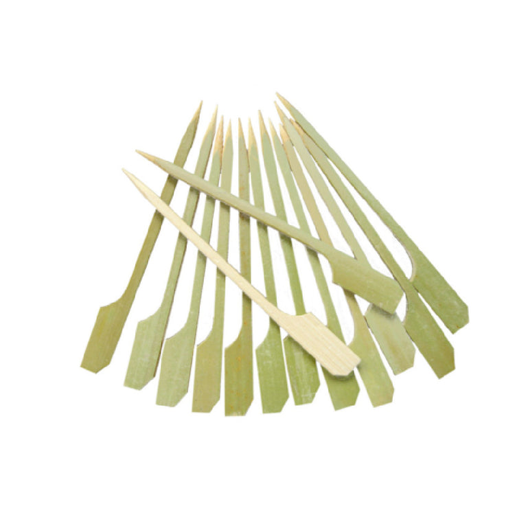 The Town 51617/CS Paddle 7" Bamboo is a premium tool ideal for culinary environments, catering to both professional and casual chefs. Constructed from bamboo, a renewable and environmentally friendly resource, this paddle is designed with a natural green finish, adding a touch of elegance and sustainability to its utilitarian function. Measuring 7 inches, it offers versatility in a range of cooking applications, from stirring and mixing to serving. With a package containing 50 paddles, this product is priced per case, making it an economical choice for large-scale food service operations such as restaurants, catering services, and buffet lines. The bamboo construction not only ensures durability and strength but also provides a lightweight feel, reducing fatigue during extended use. The Town 51617/CS Paddle 7" Bamboo is perfect for those seeking functionality with an eco-conscious edge, making it a valuable asset in any kitchen setting where efficiency and environmental responsibility are prioritized. Its robust construction and stylish appearance make it a practical and attractive choice for diverse culinary applications.