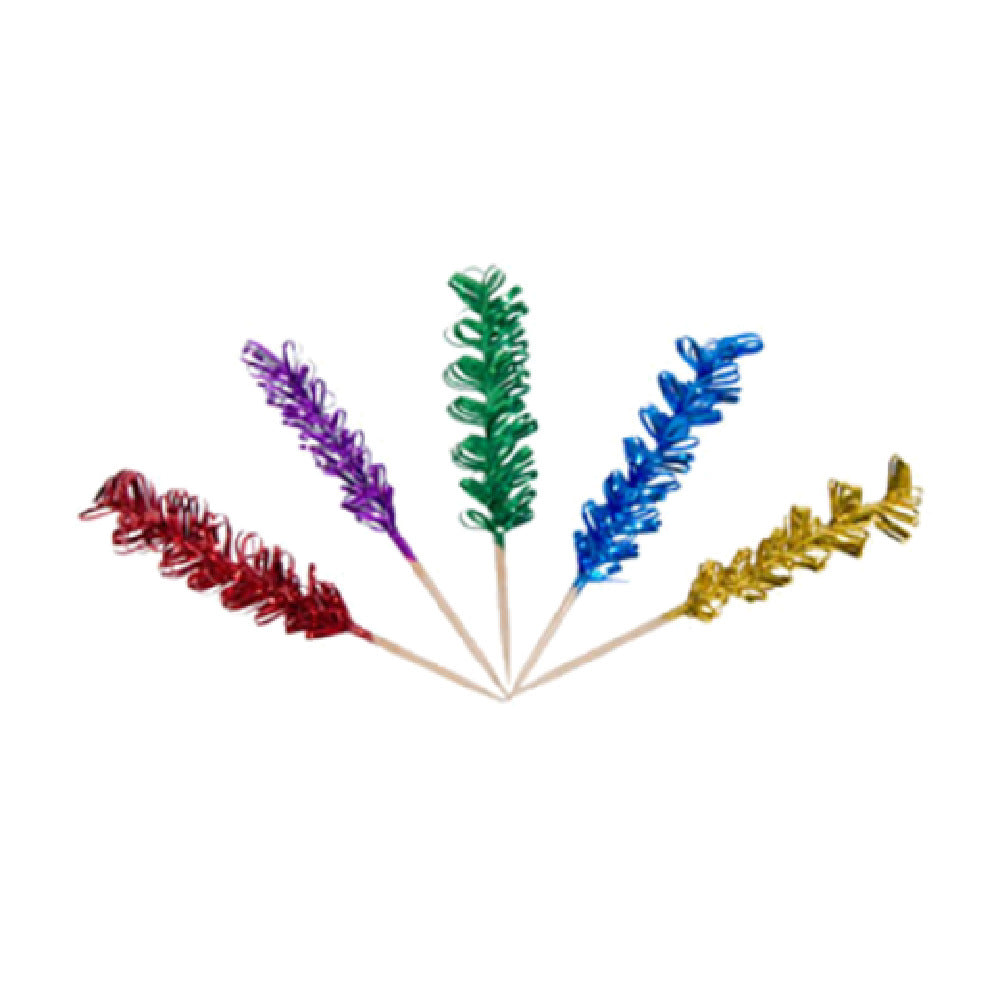 Town 51802/CS Cocktail/Food Pick 4"L Curly Foil Frill Top -