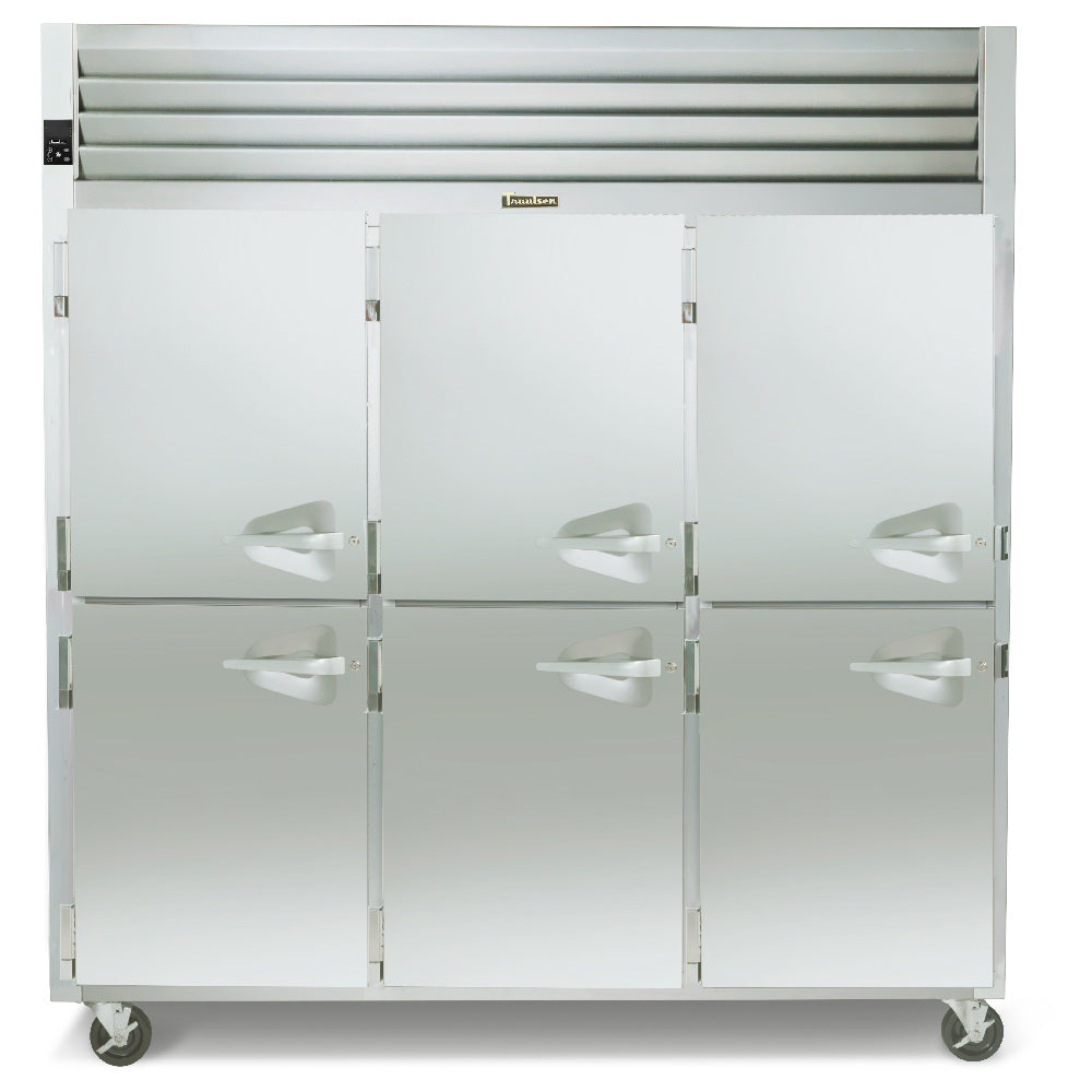 Traulsen G32003 Dealer's Choice Display Refrigerator is a meticulously engineered unit, perfect for businesses that require robust and efficient refrigeration solutions. This three-section refrigerator boasts a substantial 70.1 Cu. Ft. capacity, making it ideal for high-volume environments such as restaurants, grocery stores, and catering services. Equipped with self-contained refrigeration, it features six half-height glass doors, all hinged to the left, allowing for easy access and visibility of stored products. Each section includes three epoxy-coated shelves, providing ample space and support for various items. The integrated microprocessor with an LED display ensures precise temperature control and monitoring, while the LED interior lights enhance product visibility and presentation. Constructed with a durable stainless steel front and anodized aluminum sides and interior, it offers both resilience and aesthetic appeal. The refrigerator is mounted on 6" high casters, facilitating mobility and convenience in any space. Utilizing environmentally friendly R290 Hydrocarbon refrigerant, it meets cETLus, ETL-Sanitation, and ENERGY STARĀ® standards, underscoring its commitment to energy efficiency and sustainability. The Traulsen G32003 is a versatile and reliable choice, seamlessly blending advanced technology with practical functionality to support diverse refrigeration needs.