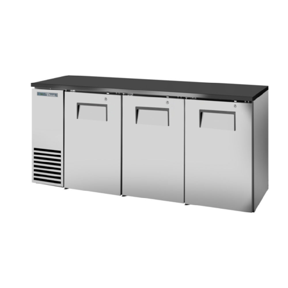 The True Refrigeration TBB24-72-3S-Z1-BST-S-1 Back Bar Cooler is a high-capacity, two-section refrigeration unit designed for optimal beverage storage efficiency. Measuring 72-1/8" in width, it accommodates up to 125 six-packs of 12oz cans or three half-barrels, making it a versatile solution for bars and restaurants of various sizes. This cooler features a robust design with three solid hinged doors equipped with locks, ensuring secure storage. Its interior is lit with energy-efficient LED lights, providing excellent visibility for easy access. The black sub top and galvanized interior with a stainless steel floor enhance its durability and aesthetic appeal. The exterior is constructed from stainless steel, providing a sleek and professional look. Equipped with six adjustable wire shelves, the cooler offers customizable storage configurations. The condensing unit is conveniently located on the left side, optimizing space utilization. Utilizing R290 Hydrocarbon refrigerant, this unit is environmentally friendly with a 1/4 HP motor, operating on 115v/60/1-ph, and drawing 3.2 amps of power. The TBB24-72-3S-Z1-BST-S-1 is certified by cULus and UL EPH, highlighting its compliance with stringent safety standards. Made in the USA, this back bar cooler seamlessly integrates into any commercial setup, combining functionality with reliability.