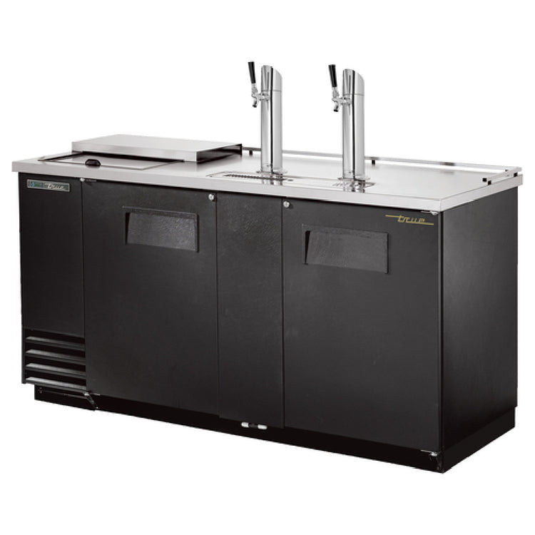 The True Refrigeration TDD-3CT-HC Club Top Draft Beer Cooler is a high-capacity refrigeration unit designed for commercial use with a robust ability to accommodate (3) 1/2 kegs. Featuring a stainless steel counter top and lid, this cooler combines durability with style. It is equipped with (2) solid hinged doors, each fitted with locks for enhanced security. Inside, a PVC-coated adjustable wire shelf and LED interior light ensure optimal organization and visibility. The unit boasts (2) 3" diameter insulated beer columns, each with a single faucet draft arm, facilitating efficient and reliable beer dispensing. Its exterior is finished in sleek black vinyl, while the interior is galvanized with a stainless steel floor to ensure longevity and easy maintenance. With its R290 Hydrocarbon refrigerant and a 1/4 HP motor, the cooler operates efficiently, utilizing 115v/60/1-ph and drawing 2.8 amps. It is fitted with a NEMA 5-15P plug, ensuring compatibility with standard outlets. Classified under cULus and UL EPH, it meets stringent safety and performance standards. Proudly made in the USA, the True Refrigeration TDD-3CT-HC is an exceptional solution for bars, restaurants, or any venue seeking a reliable and efficient draft beer cooling system.