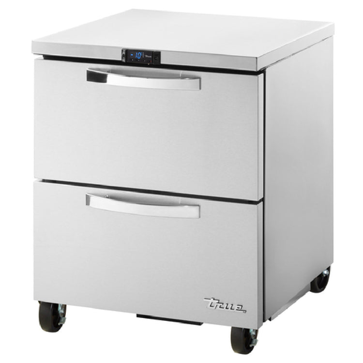 The True Refrigeration TUC-27F-D-2-HC~SPEC3 SPEC SERIES® Undercounter Freezer is a high-performance unit designed for culinary professionals seeking efficient and reliable freezing solutions. This undercounter freezer maintains temperatures as low as -10°F, ensuring optimal storage for perishable items across various foodservice environments. The SPEC Package 3 includes a robust stainless steel top, complemented by a stainless steel interior, sides, and back, offering unparalleled durability and ease of cleaning. It features two heavy-duty drawers, each designed to accommodate a 12" x 20" x 6" pan, although pans are not included. The freezer is equipped with an electronic temperature control system, complete with a digital display for precise monitoring. Utilizing R290 Hydrocarbon refrigerant and powered by a 1/4 HP motor, this unit is both energy-efficient and environmentally friendly. Operating at 115v/60/1-ph and drawing 2.3 amps, it connects via a NEMA 5-15P plug, ensuring seamless integration into existing setups. Certified by cULus and UL EPH Classified, and made in the USA, the TUC-27F-D-2-HC~SPEC3 embodies reliability and quality. This freezer is a versatile and essential asset for restaurants, catering services, and other professional kitchens requiring dependable frozen storage solutions.